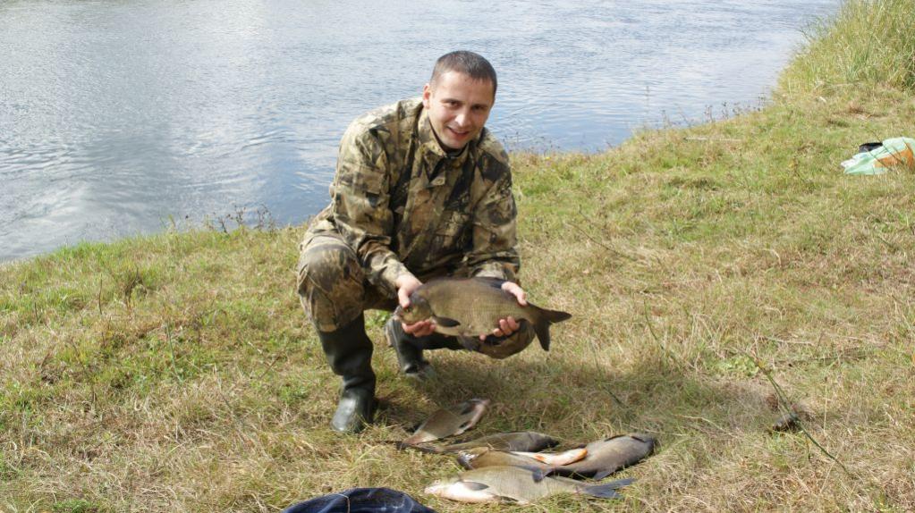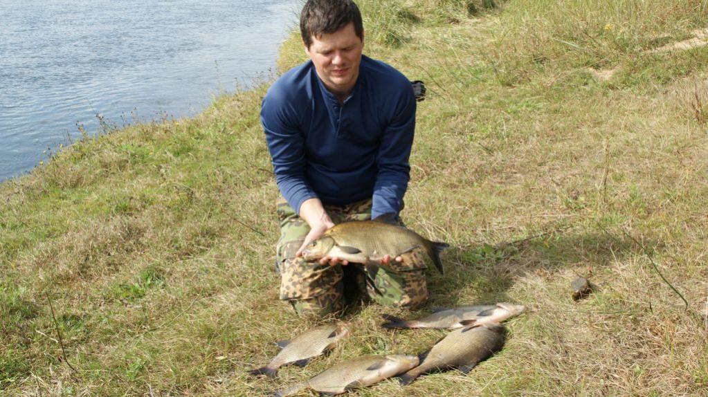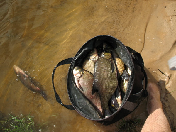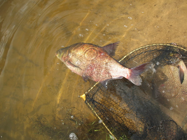 • Сегодня впервые ловил на Немане на фидер (раньше был один раз со спиннингом), был ниже Щорсов. На реке был в 5.30, клевать начало только к 10.00. Был сход чего то очень крупного (разогнулся крючок Гамакатсу № 10 при не зажатом фрикционе), был сход леща около 2 кг возле подсака. Двух лещиков удалось добыть. Мелочь не брал.