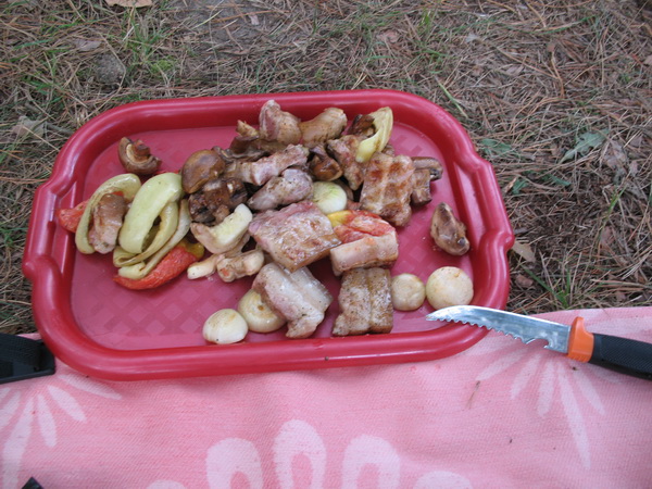 После стартового закорма две поклевки и два схода подлещика, час тишина и беру бронзового красавца. Больше до 20 часов поклевок не было. А после был шашлык-башлык и общение у костра.