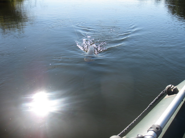 Где то за час, изловлено два десятка отборных окуняк (от 200 до 250 гр.), пару счучкаф(только одна домой, остальные утоплены). Потом как обрезало, не долго думая, достаю любимую вертушку (которую подарил мне хороший человек Сергей Н.) и имею грандиозную поклёвку лобатого, думал жерех за трёшку (так мой фрикцион гудел). Но это было всего секунд десять, потом сдался, голавлик грамм 400-500. Но это было незабываемо. И такая досада, на след проводке лишаюсь блесны Сергея, обидно, эксклюзив, а как она работала :(, но как гриться, она ушла к Неманским богам!!!