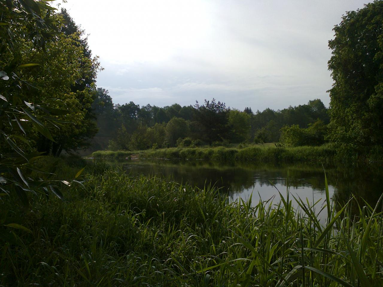 В воскресенье вновь выбрались на Нёман со спиннингами, на этот раз ниже пересечения с трассой М1 в районе Столбцов. Приехали на рассвете к Круглице и пошли вверх по течению по правому берегу. На местах с доступным подъездом было многолюдно: палатки и машины отдыхающих, да и рыбаков хватало.