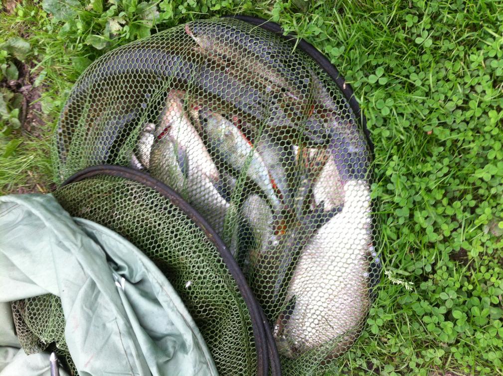 Здесь было повеселей . То ли комары уже знакомые , то ли уже съели какого рыбачка , но нас не трогали . Репликант работал !!! Ловили фидером на опарыша с пенопластом , черви , кукурузу и горох рыба игнорировала . Кормушки 100- 120 грамм , прикормка пшено с горохом + запаренный жмых . У Володи снасти вообще не предназначены для реки , но всё равно умудрился вытянуть килограммового карася (!!!) . Клевала в основном мелочь , ни один подлещик не перешагнул килограмм . Зато плотва Нажмите на изображение для увеличения.