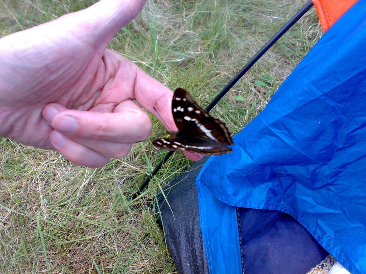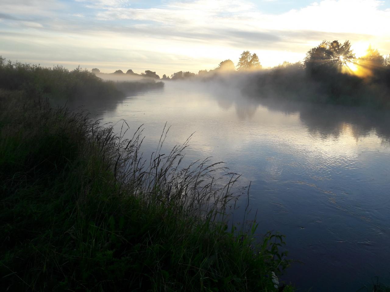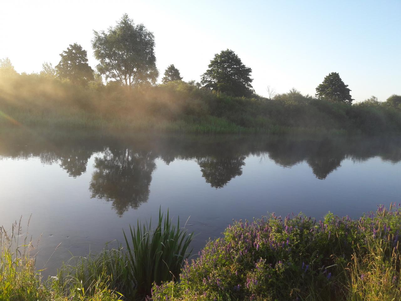 , решили ребёнка навестить, обеспечив ему разнообразие проведения каникулов), он в детском оздоровительном лагере "Теремок", что за Новым Сверженем расположен, сейчас резвится. А Неман то - рядом:D, забрали Саньку с лагеря под свою ответственность по согласованию с воспитателями, и на берег этой живописной речки, с целью - ночёвку там осуществить, выдвинулись. А там, прямо на побережье Немана, организации нейкие сэйшен культурно-спортивно-массовый, с широким размахом и в полный рост, с песнями и плясками, устраивают. По бережку проехали, место нашли без проблем, лагерь свой небольшенький, на бережку, недалече от молодого сосонничка, разбили) Палатка-покрывало-мангал-шашлычок-под пивко, без фанатизма:D Ну и без рыбалки не обошлось. Пока лагерь разбивал, попутно пару кормушек закинул. Очень мелкий в том месте Неман. Поклёвок не случилось. Ближе к вечеру, решив, что хватит спиннинг кашами осквернять, решил использовать его по назначению, кормушку - долой, воблерок присобачил, Саньку в сопровождающие прихватил, и вниз по течению по речке дотемна прогулялись