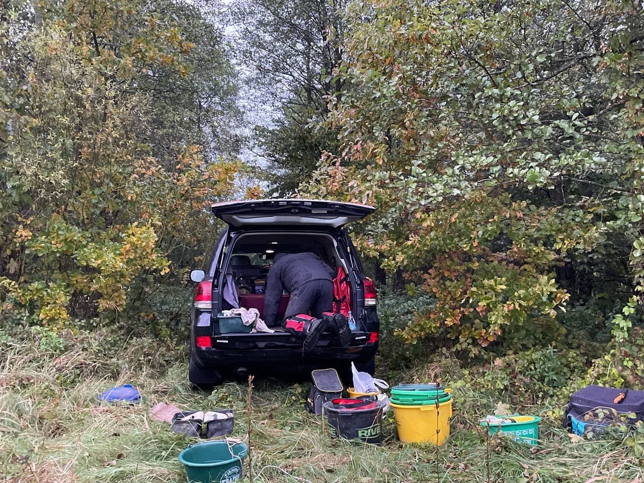И в этот момент начался дождь ☔ , который прекратился только в начале третьего дня. Причём дождь был хороший, а временами и сильный. А мы, расслабленные накануне хорошим прогнозом синоптиков, не взяли с собой зонты. Нас хватило на то, чтобы приехать, сделать прикормку, разложить удочки и половить полчаса. Поклевок не было, и мы, промокшие до нитки, спрятались в машину греться и ждать окончания дождя. Ждали и не дождались. Чтобы убить время, побродил с часик по лесу, все равно уже мокрый как курица. Насобирал на одежду штук 5 клещей, и одного снял уже с себя. Представляю сколько их там по сухому. Ужас!