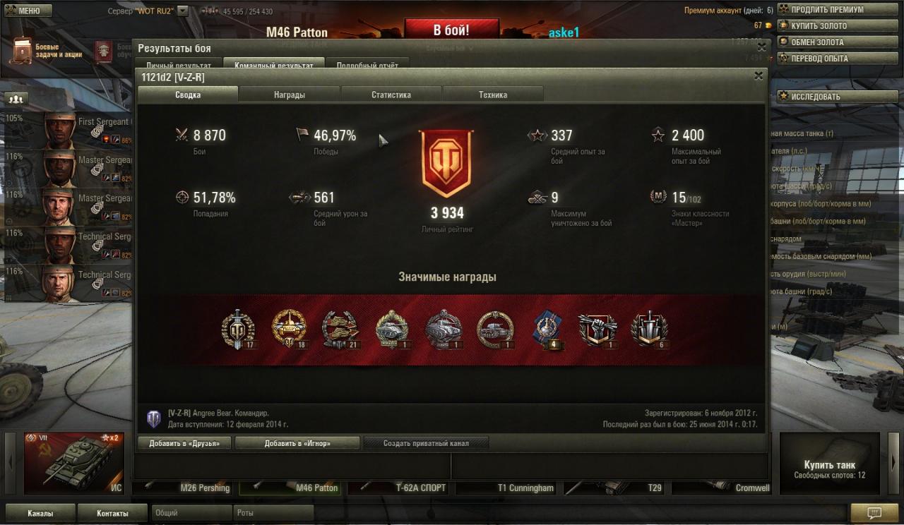 • так и мне кажется, что нет баланса по технике, как пишут. Я на обычном исе в :):):):), а 45%@600кпд Лёха на ис3 в топе против 6 и 7 уровней. Сколько раз подмечал. А нам красочно про балансный вес техники расписывают. И кого же мой ис в боях с девятками балансит? Т71 или 1390? Смешно же! Танк вроде относительно неплохой, но надоело в опе постоянно, где тебя практически ваншотят.