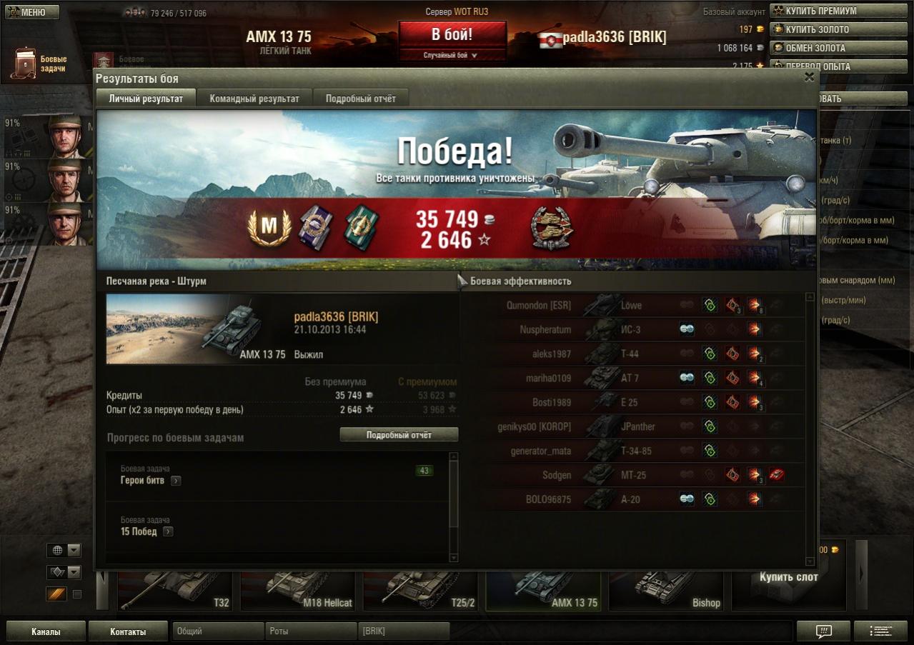 • Нифига неполучая удовольствия от игры на ТТ 8х уровней решил кординально сменить клас техники. Приобрел по акции АМХ1375 и стало интереснее играть, хотя раньше нелюбил на светляках кататься.Нажмите на изображение для увеличения.