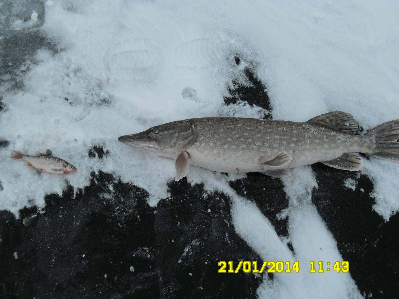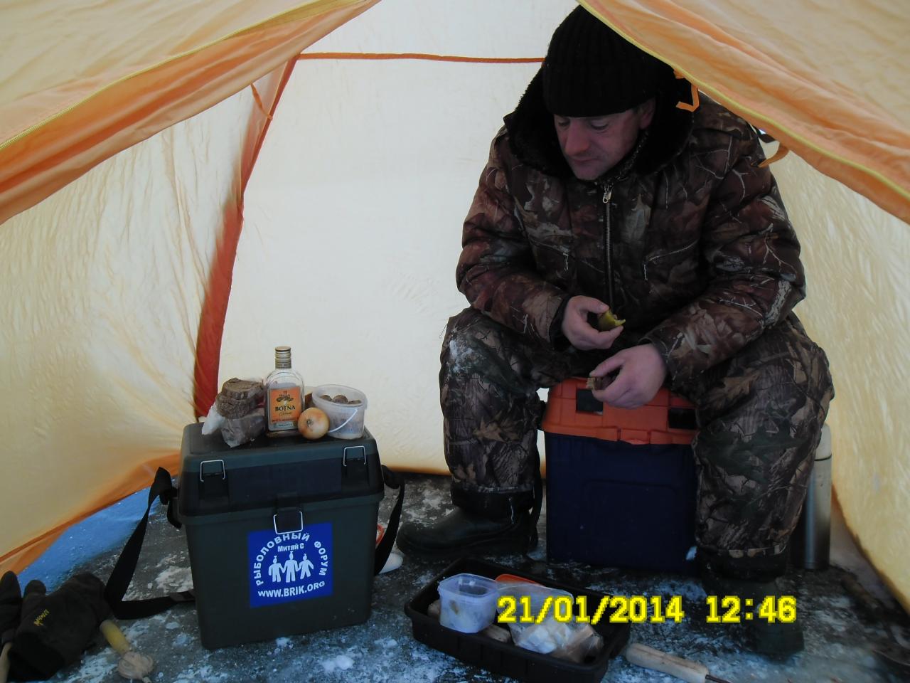 • Вот и я сегодня с открыл ставочный сезон 2014 в компании с ДЕНЕЙ. Выставились на рассвете, и остались в ожидании выстрелов флажков. Но они упорно не хотели взлетать в верх и радовать нас. приняли решение закормиться и поставить палатку т.к. из за ветра не возможно было начинать лов бели, лунки затягивались и заметались мгновенно. перед установкой сделав глоточек коньячку для сугреву и сказав волшебные слова " Раз, два, три, ставочка гори", и вот она правда горит. Подошли не спеша, мотает, стала, освободил от снега и опять мотает, потяжка и сопротивление на другом конце лески. Пара минут и моя первая красотка на льду. Через час одновременно две сработки у Дени и пара щупачек рядом с лунками. Было ещё пару сработак до 14 часов на карасика и плотвицу но к сожелению окунёвые.