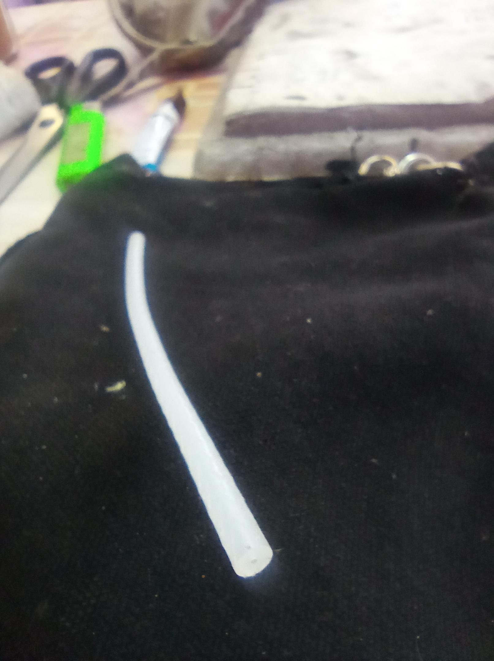 А теперь адаптировал её к резинке. Во " взрывателе" просверлил отверстие, в которое продел полметра лески 0.5, надел с обоих сторон по бусине и по пробке от шампанского, а на концах лески сделал петельки, чтоб застёжку можно было пристегнуть.