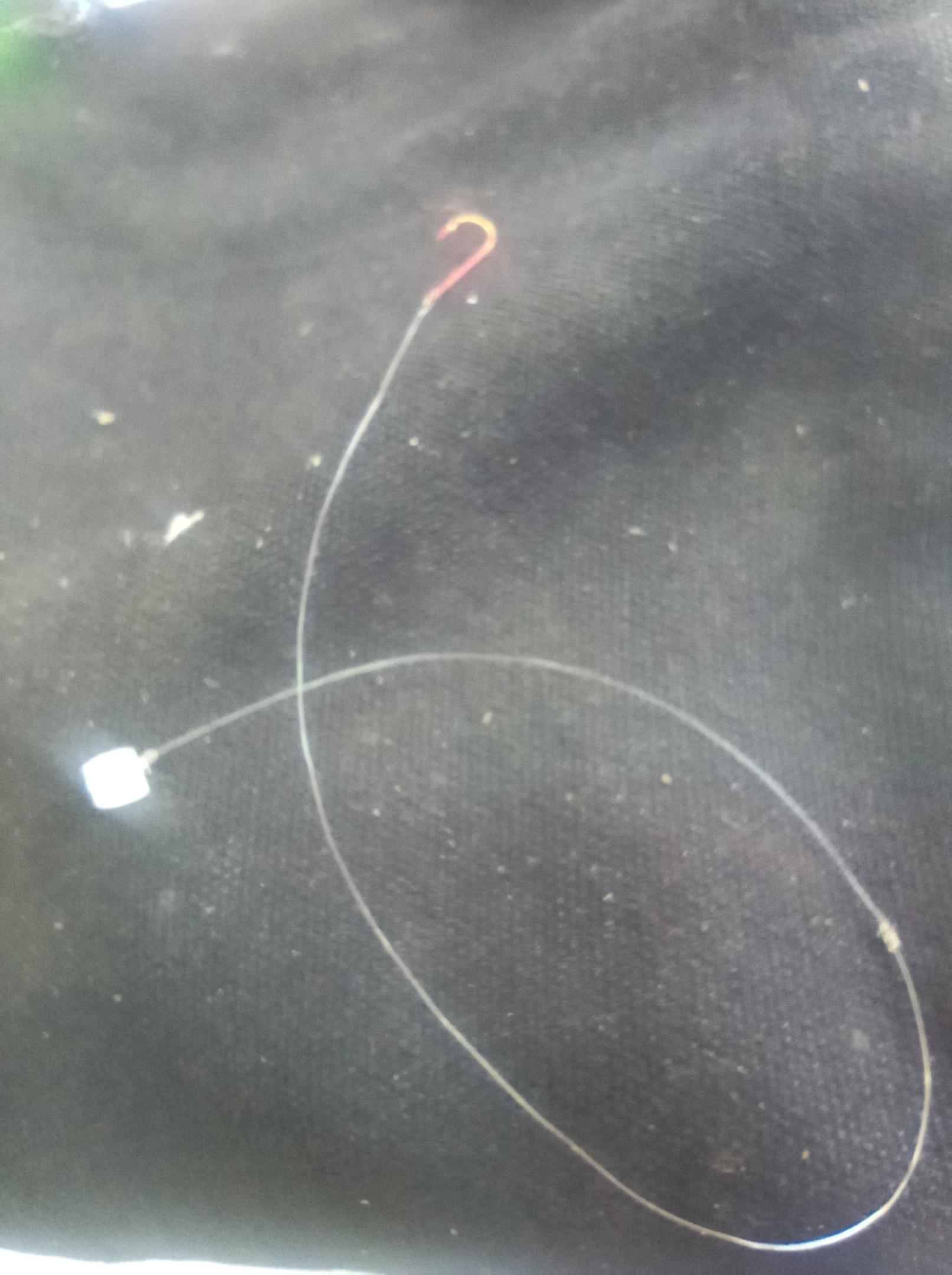 Поэтому поводок у меня из двух частей, половинка для рыбы, половинка чтоб не крутилась. А за 90 градусов отвечает кембрик, который надет на основную леску, он должен быть достаточно прочным чтобы его не перетягивал в таллии поводок, и отверстие в нём чуть толще основной лески, чтобы его останавливали узелки на основной леске без всяких бусин, дробинок, и прочей бижутерии, которую рыбе придётся тянуть чтоб я увидел поклёвку.