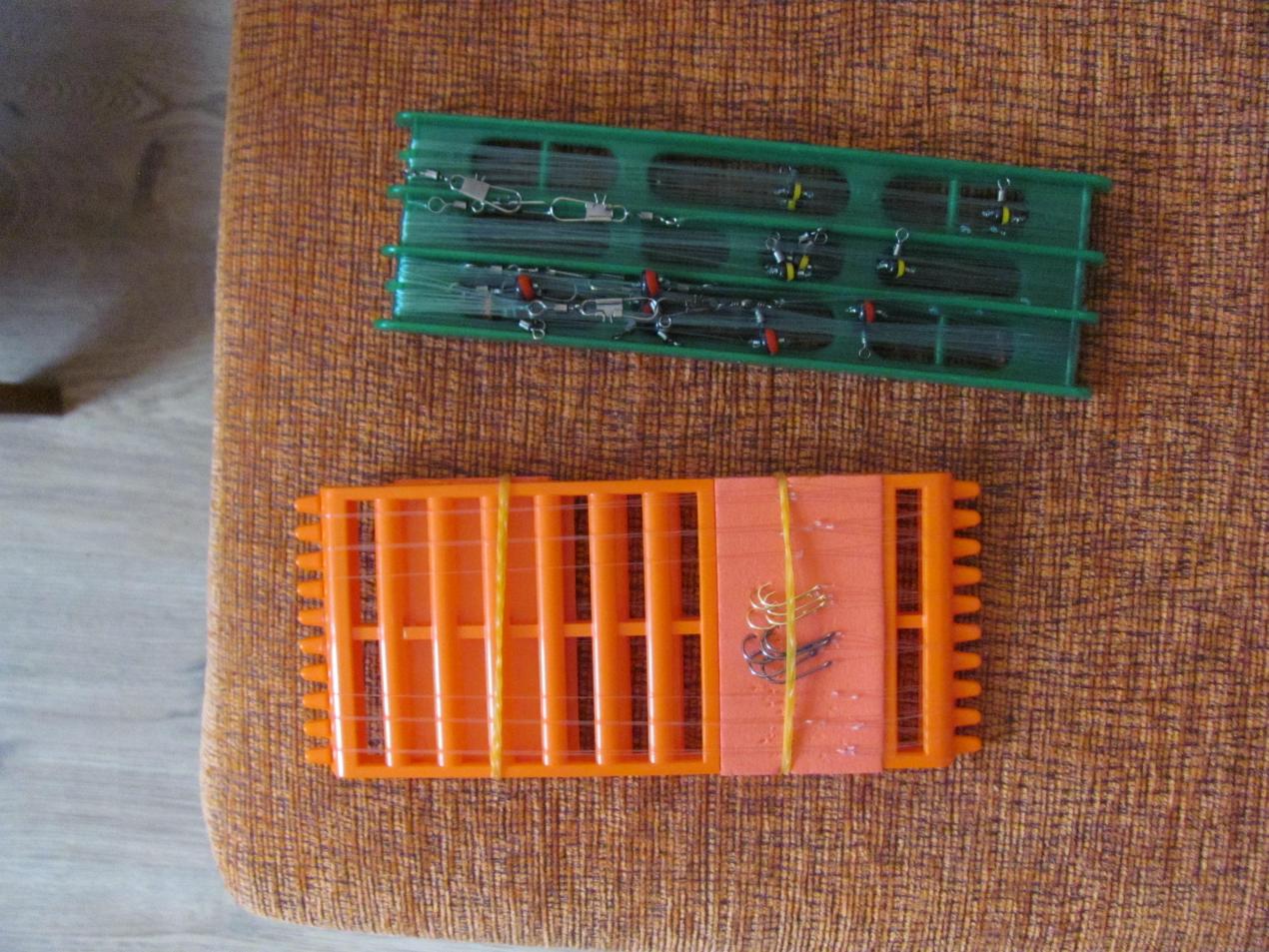 • Zederr Пару замечаний . Поплавок для груза надо бы побольше ,чтобы лучше видеть с берега возможный снос резинки из-за течения или ветра.А поплавки для закорма -поменьше,чтобы меньше ветром сносило. И леску с поводками ,на мой взгляд, удобнее мотать на узкий пенопласт.Там крючки в любом месте воткнуть можно. А так -хорошо подготовился.