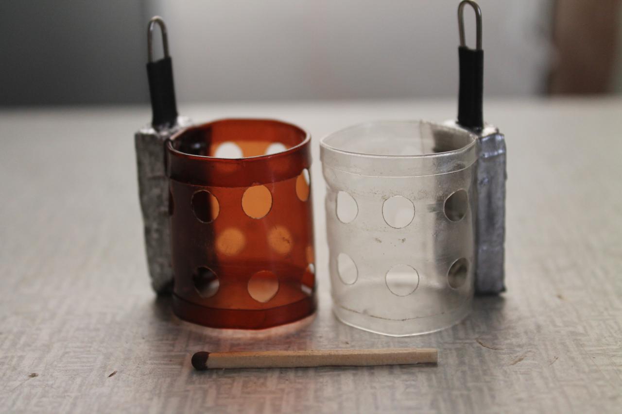 Сами кормушки из ПЭТ бутылки. У белой загнуты края для жесткости и не режет пальцы на мокрой руке при наполнении кормом. Можно не загибать. Но, как-то эстетичнее.