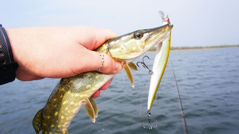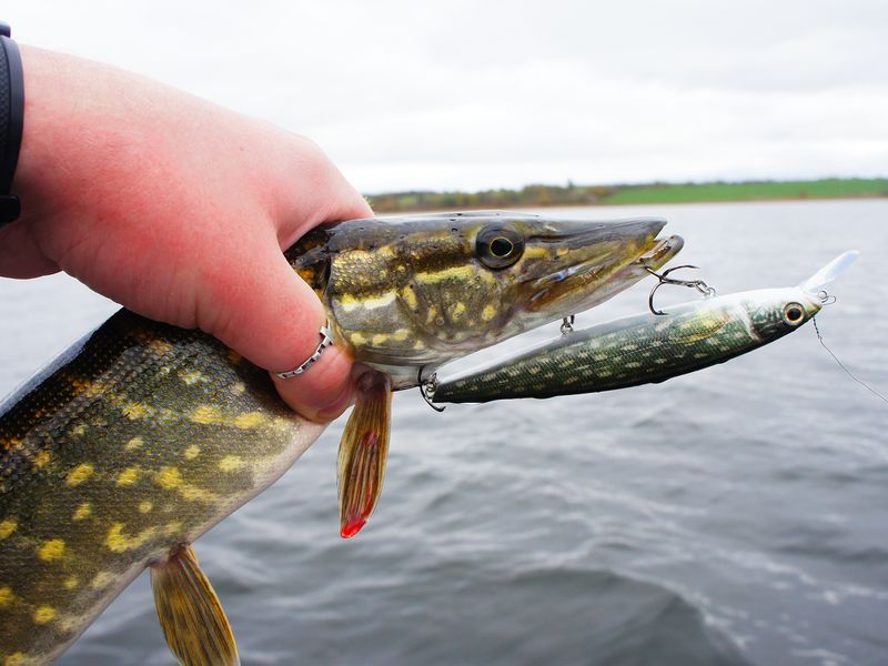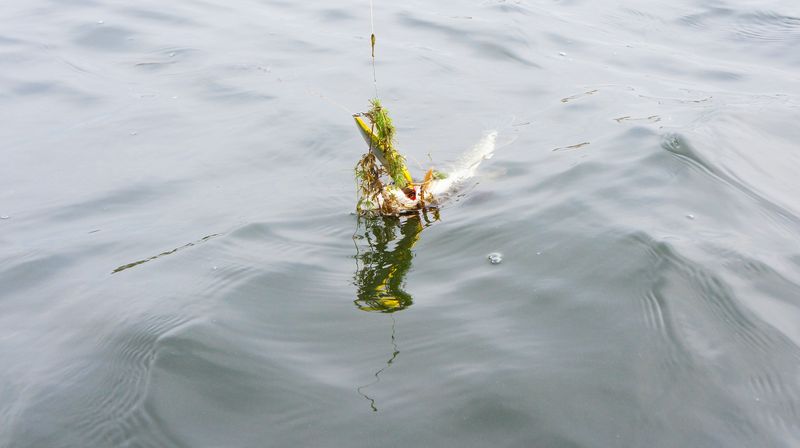 Снова щучка очень осторожничает, приходится добавлять в обычный медленный твич резкие ускорения, протяжки и шевеления. В ходу только биг минноу. Вся остальная мелочевка в игноре. Осень как-никак - атакует, чтобы покушать, а не просто порезвиться. Сначала пробую Megabass Magnum - на него, как и в прошлый раз, почти сразу садится мелкощук. Оставляю его в покое и ставлю другие приманки, чтобы доказать прежде всего себе, что не приманка ловит. И доказываю - в эту пору важно место ловли (везде, где есть остатки травы-засады), размер приманки и проводка. Цвет приманки, если это не кислота (Черея единственный мой водоем, где кислота почти не работает!) вообще не имеет значения! Троли уже в небольшом количестве плавают и ничего не ловят, подводники тоже говорят, что рыба от берега ушла.