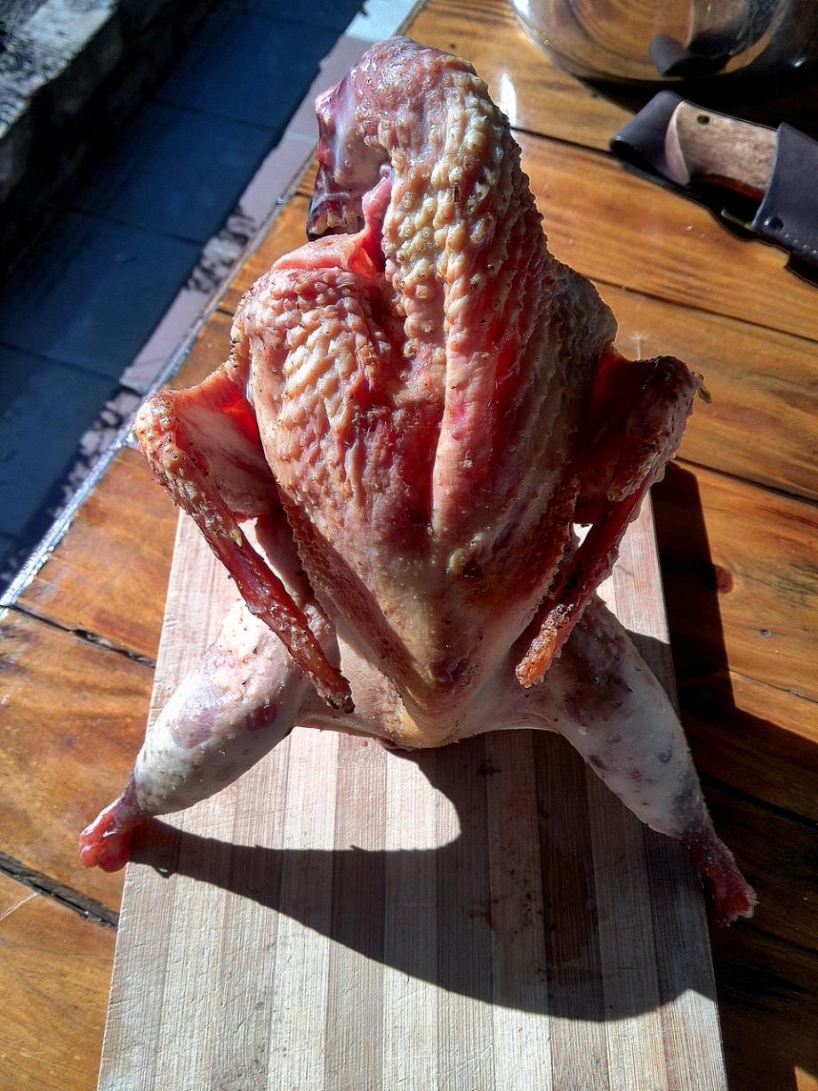 Специалистом в области ухи варения не являюсь, поэтому спорить о том насколько это правильный рецепт не буду. Готовил на костре, на берёзовых дровах. Раньше я думал, что "уха из петуха" это просто прикол такой, оказалось нет. Теперь всё по порядку. Для начала нужно отправится на рынок и купить этого самого петуха. Только так, именно петуха, а не курицу, говорят это важно. Петух с эко фермы мне похоже достался самый бойцовый, жилистый самурай страшный.Нажмите на изображение для увеличения.