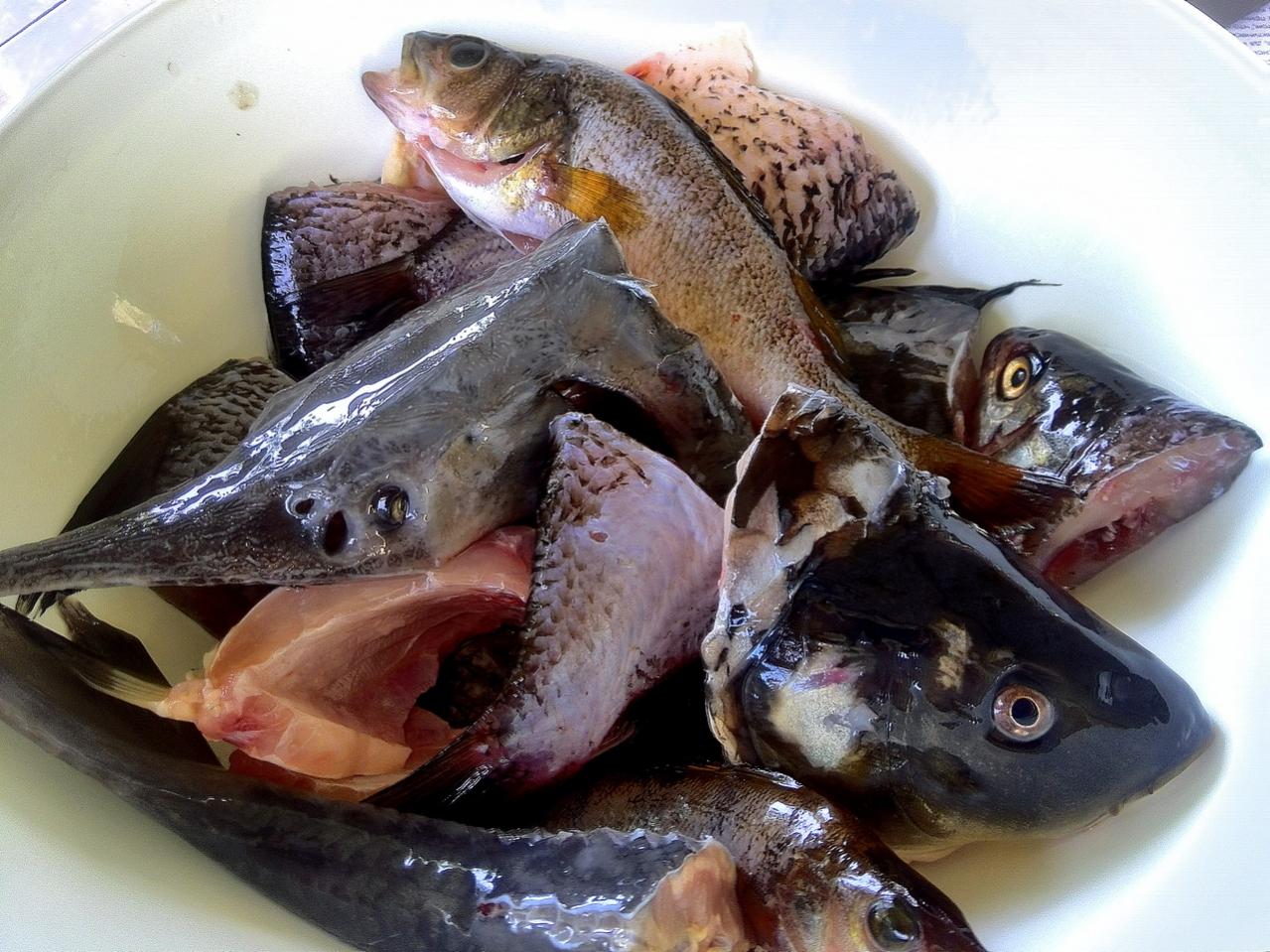 всякой разнорыбицы речной чем больше, головы, плавники - у меня было около 2-х киль всего