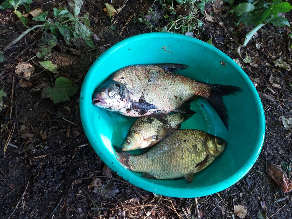 Кормил 2 точки и ловил на 2 фидера, т.к. клёв был очень пассивный. Одну кормил Vabik Лещ замешанную на медовой ароматике RS + печиво От трапер . Вторую кормил составом RS спорт лещ чёрный + RS спорт лещ+ печиво от Трапер . Лещ не пришёл ни на одну ни на вторую точку (у тестя та же беда) =) За 2-ое суток в улове 2 подлещика. Основная часть улова это карась (бонусом влетел один на 700 грамм) и небольшая густера. В субботу так вообще перешёл на карасиный состав и по карасю неплохо отловился. На двоих порядка 5-ти килограмм. Есть подозрение что леща прибило из-за погоды, но на карася упор делать можно.