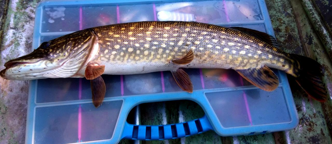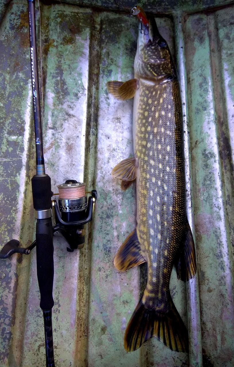 • Сегодня брат захотел порыбачить, выехали вдвоём. Начали с Дымковки, первую щучку с кило поймали там на Флагмановский 130 минноу , тот же что и в постах выше был, потом спустились за Судабовский мост, там ещё две на джерк, Салмовский слайдер 10 .БОльшая примерно полторашка. В целом конечно сегодня клёв похуже.Вдвоём в лодке веселей :) , и есть кому зафотить.