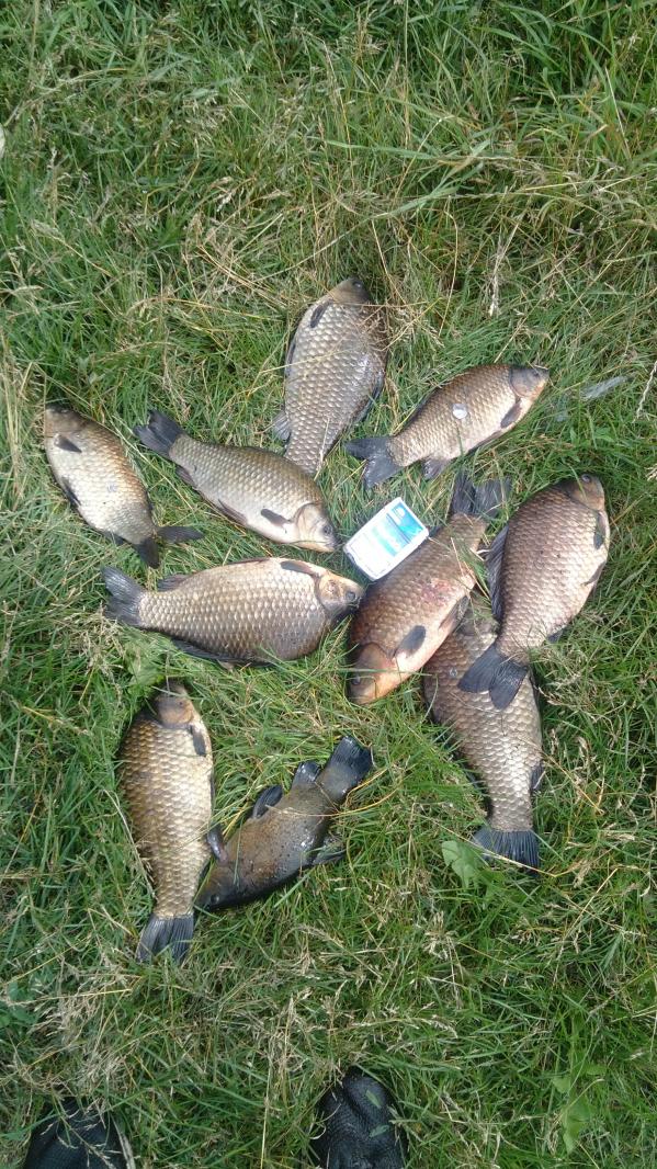 • Пятница вечер- суббота утро. Начал ловить где-то с 20.00. Планировал половить пару часиков, прикормить, отдохнуть и утром на точку. Планам не суждено было сбыться. Поклёвки начались с 21.00 и продолжались до 01.30, дальше перерыв до 04,00. Утром клёв вообще никакой, даже мелочь не беспокоила. В 09.00 утра рыбалку закончил. В итоге больше десятка товарных карасей, пару линей,пару неплохих плотвиц и краснопёрок. Был пойман зеркальный карпик грамм на 200, уплыл подрастать.