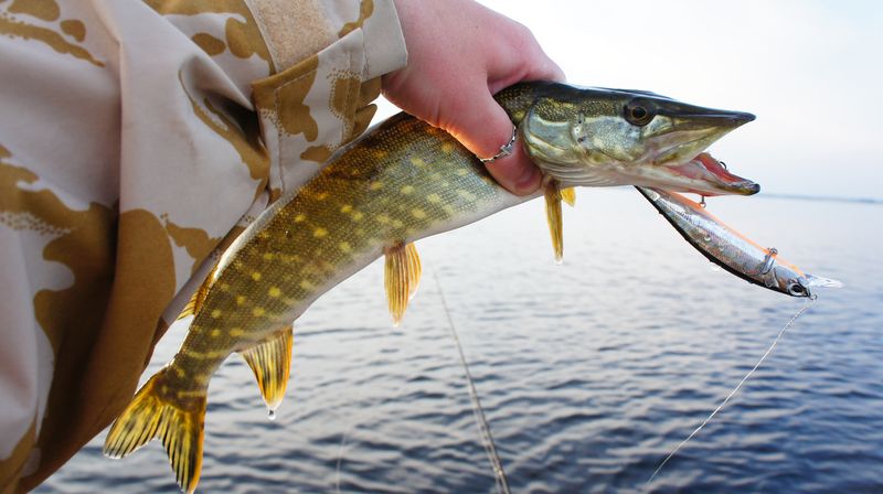 ID:	3744848. Поэтому начал рыбалку с воблеров натуральных расцветок. Буквально с третьего заброса тычек, подсечка, пусто, следом еще тычек, подсечка, есть! Думал окунь, оказался мелкий щуренок, который сразу уплыл подрастать. Нажмите на изображение для увеличения.