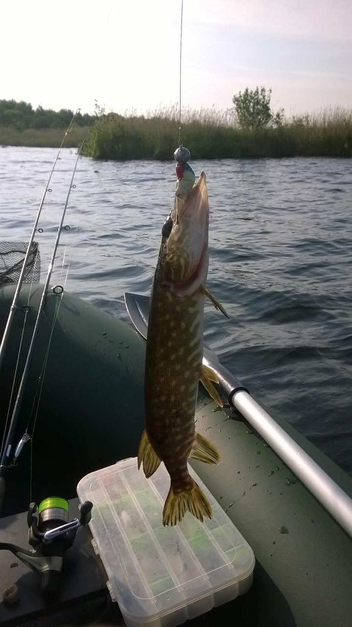 • Был на открытий 4.30 на воде ,поставил 5 жерлиц (наживка карась).Первый заброс вдоль берега(блеснна Англия белая 5)сразу увидел выход но щука промахнулась.Поменял на такую же 3,пару проводок и чую кто-то есть щучка гр400 очень пленная вся в пиявках и следах от сетки (отпустил подростать).Ставлю 5 номер глуб метра 3 пару забросов ,поклевка гораздо приятнее я подтягиваю к лодке а она к камышам ,раз пять заводил в подсак (завелась)кг полтора(адреналина море).Позже споймал ещё килошку.На ставки попался шнурок гр400(отпустить не получилось).Сосед по даче споймал 2 по800 и окунь гр500 было пару сходов.У тролингистов тоже не густо.По эхолоту большое скопление рыб на гл7-8м.Выплывал после обеда полный зеро.Но вобще грех жаловаться .Всех с открытием.