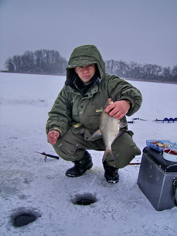 На снимке 1 лещ на 1,5 кг(сверлил рядом лунку и разбивал перемычку молотком) и и пять более кг.