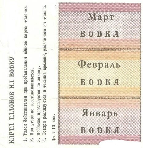 Недавно увидел в интернете фото продуктовых карточек, талонов, которые были в 90-х. Особенные эмоции и воспоминания, были при виде талонов на водку.