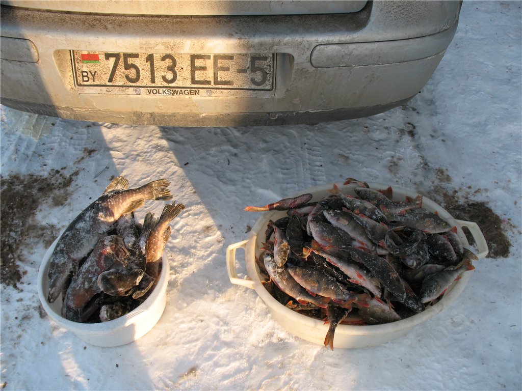 Приехали – народу, почти что нет, так отдельные индивидуумы тусуются на ямах. Местные, наверное, потому что пробили пару ям и свалили. А мы честно избурили добрую половину территории или ледотории;) порта и в итоге получили по судаку ЗЕРО:o. За день поймали по десятку-полтора окуней не самого крупного размера – у меня самый большой был 150 грамм. Еще подлещика поймал 300 грамм на балансир за лыч. Короче нечего там делать.