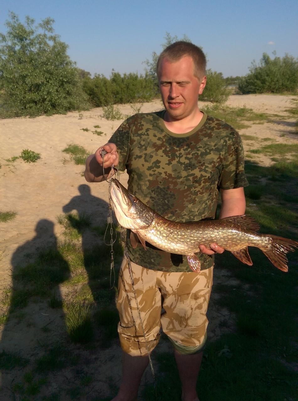 • Открывали сезон на Припяти с 18 по 20 мая. Клёв был, но рыбу надо было искать, нашли на глубине 1 метр, ещё в первый день, пока мы раставляли лагерь, друг поймал щуку на кило в небольшом старике. На утро, на забытой удочке, закинутой на червя сидела ещё одна щука, заглотившая 100 грамового окуня, видно севшего раньше.