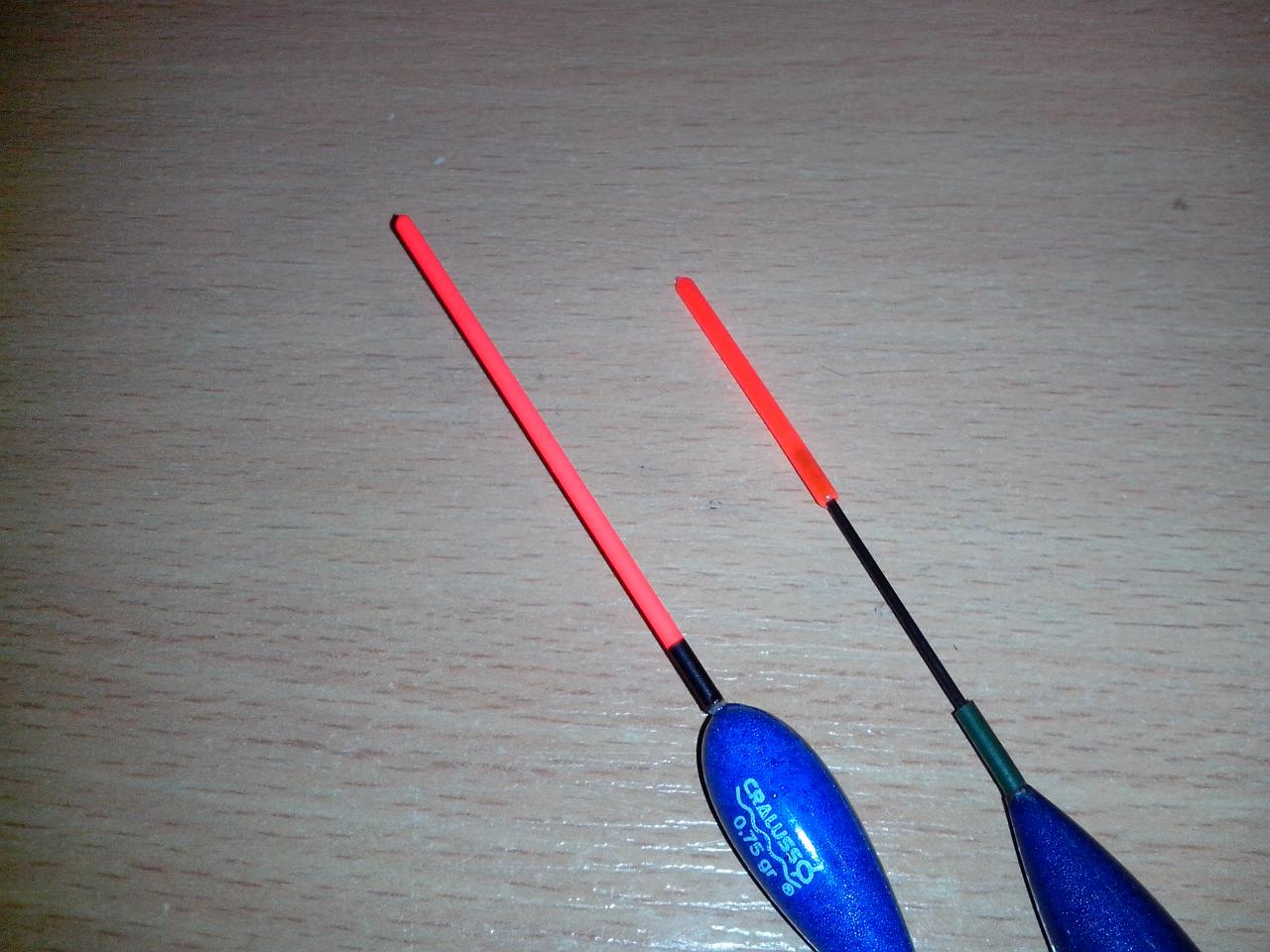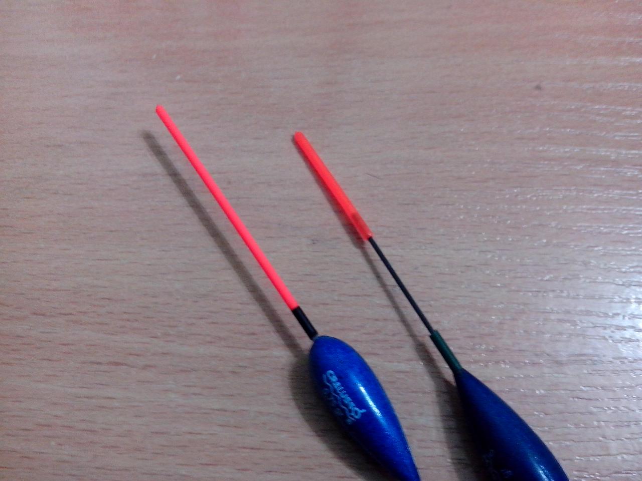 Да, что тут поделать, по фото трудно определить разницу в яркости, такой фотик в телефоне... Но согласись что на первом фото где 2 поплавка как-то и не заметно что антенки разного диаметра и значительно разного. Виктор Водолей чуток не так выразился, цвет не режет, он просто более выраженный и на расстоянии очень хорошо заметен.