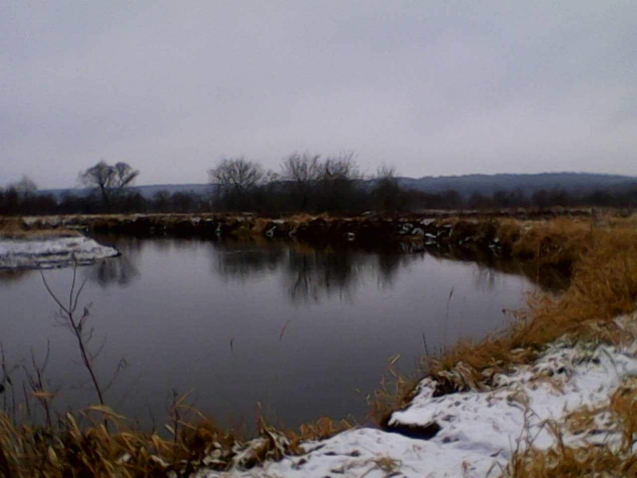 • На дворе не понятно что, с самого утра сильный порывистый ветер, гололёд и дождь:(, чуть развиднев погодка немного наладилась, значительно потеплело, градусник показывал уже все 6 градусов плюса:o. Всех домашних разнесло кого куда, остался один. Дабы не напала хандра решил порыбачить, вернее повидать воду, а еще вернее просто попутешествовать:) Принимаю решение объехать Щару, выше и ниже плотины, авось найдется местечко для заброса спиннинга. По любимой реке информации нет, не заслуживает она этого забытья даже и в зимний час.;) Да и какой он уже зимний, в настоящее время больше похож на ранне весенний:) Заезжаю на реку ниже плотины. Река открыта, кой где имеются закраины, изредка проплывают отдельные льдины, уносящие в себе надежду на зиму, морозец и снег. Нажмите на изображение для увеличения.
