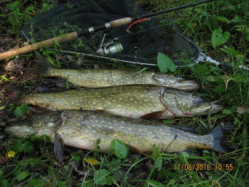 • Сегодняшним утром со спиннингом прошёлся недалеко от Борисова. Щучка заметно "расшевелилась", возможно вчерашняя вечерняя гроза её взбодрила. Было что-то около десятка поклёвок. Три щуки, большая из которых на 2.300, поехали со мною в Борисов, всё остальное - сходы, пустые поклёвки и "стручьё", куда же без него. Рыбалку закончил когда ощутимо припекло солнце...