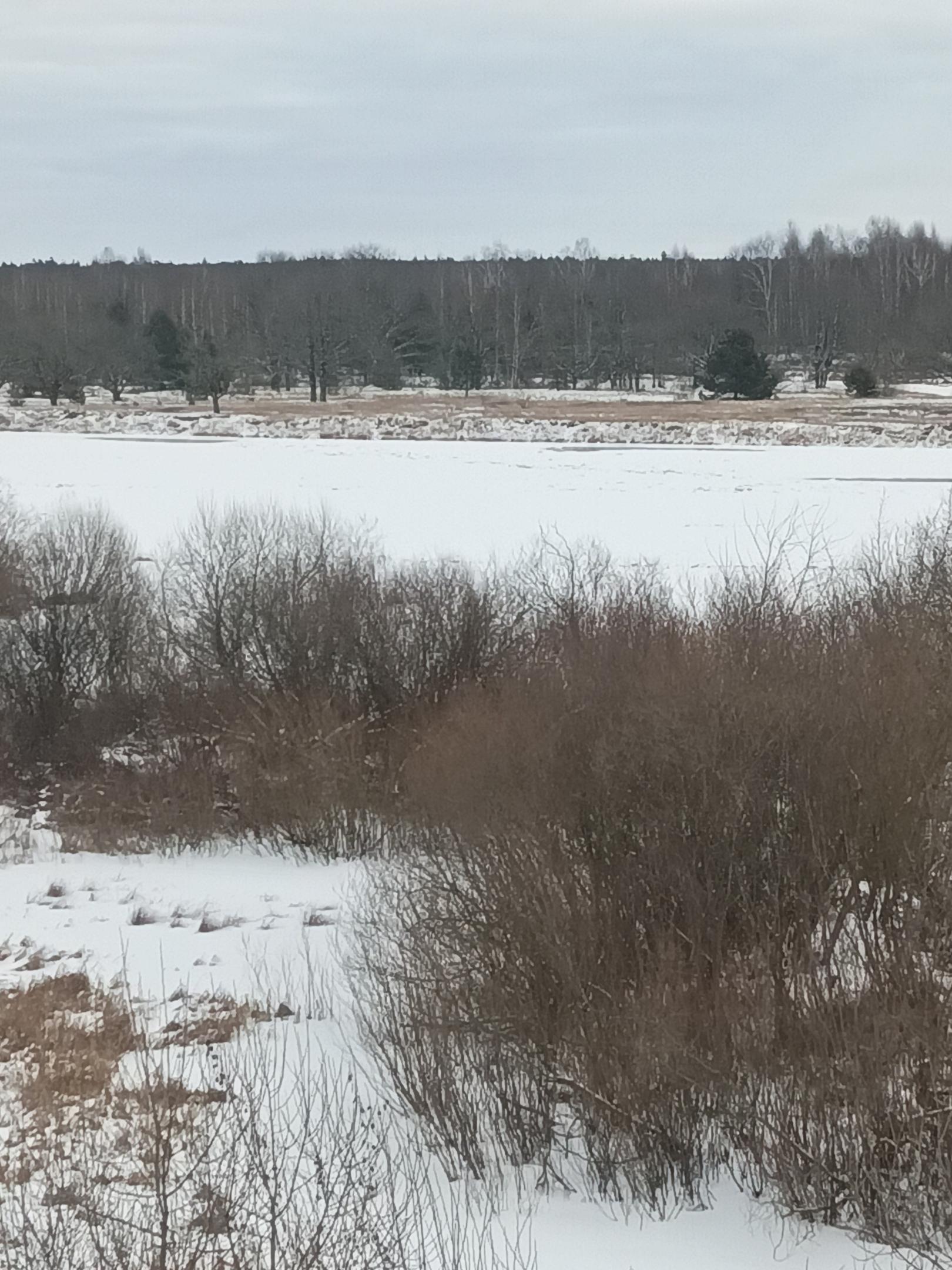Река под ледоста́вом с 19 февраля. Кое- где имеются разные по размерам промоины.