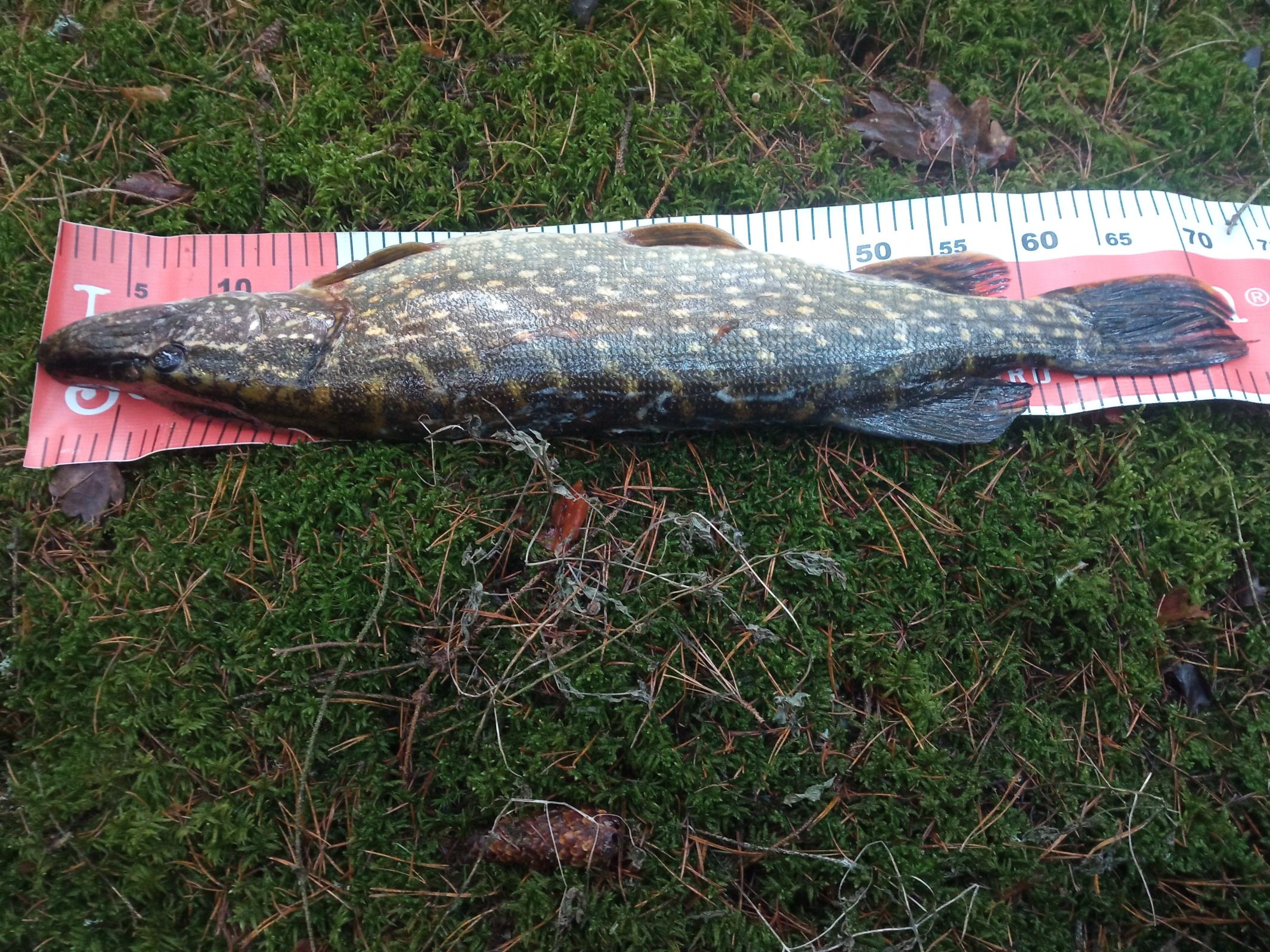 ). Правда, бодрости духа хватило не надолго, ну примерно на час и снова небольшое уныние от бесклёвья. Думай товарищ, думай. Раз рыба не клюёт в реке, то не заглянуть ли в старичок, проплывая мимо него по реке. Так и делаю. Старик соединяется с рекой небольшой протокой с узким проходом. Проплыл я его не выходя из лодки и выплыл на открытое пространство. Ага, основная масса лопуха уже опустилась на дно, есть места, где можно спокойно провести блесну-вертушку и не только. Заряжаю колебалку мепс "Циклоп" и делаю забросы и...на пятом, или шестом забросе в районе нахождения приманки в воде при проводке появляется мощное завихрение с летящими в стороны брызгами, а потом знакомое ощущение в руках держащих спиннинг, который сигнализирует, что приманку попробовали на зуб. Щучка дала бой достойный, плюс всё время зарывалось мордой в лопух, пришлось на лодке подгребать одной рукой, чтобы добраться до неё. Заглотила она блесну глубоко, поэтому ей не повезло. Вес щучки примерно 2.500, весы с собой я не вожу, до дома она не доехала, так как я отдал знакомым. Через полчаса всё повторилось точь в точь, как с первой щучкой. На блесну-вертушку мепс N4 "серебро" была поймана щучка около 2 кг. На этой мажорной ноте я рыбалку закончил. Всё, что хотел от рыбалки, получил по полной, за рыбалку и даже за соцреволюцию дома поднял пару рюмашек