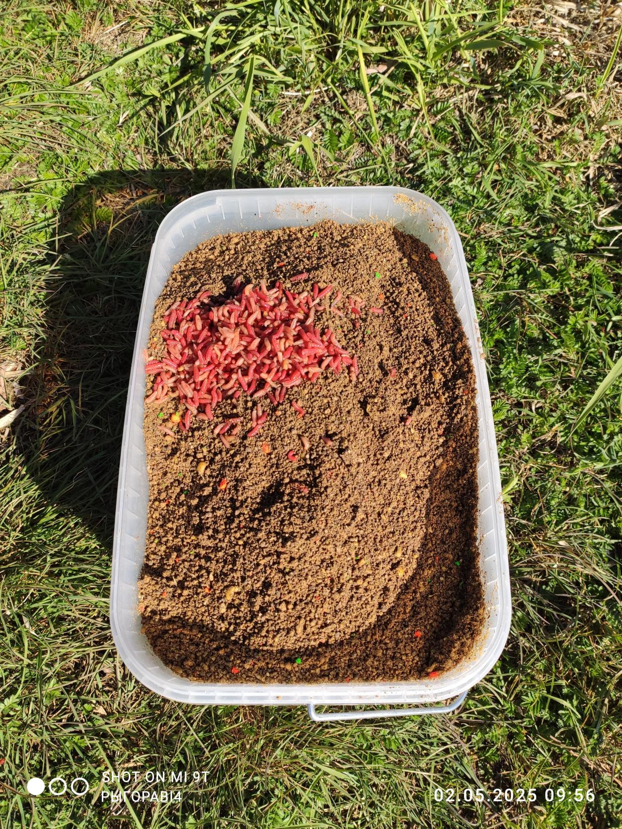 смешал с остатками прикормки и вытряхнул туда же остатки животины. Последние 2 часа докармливал фактически землей. За этот период словил основное количество рыбы. Лещ, густера, плотва, окунь, и один язик.