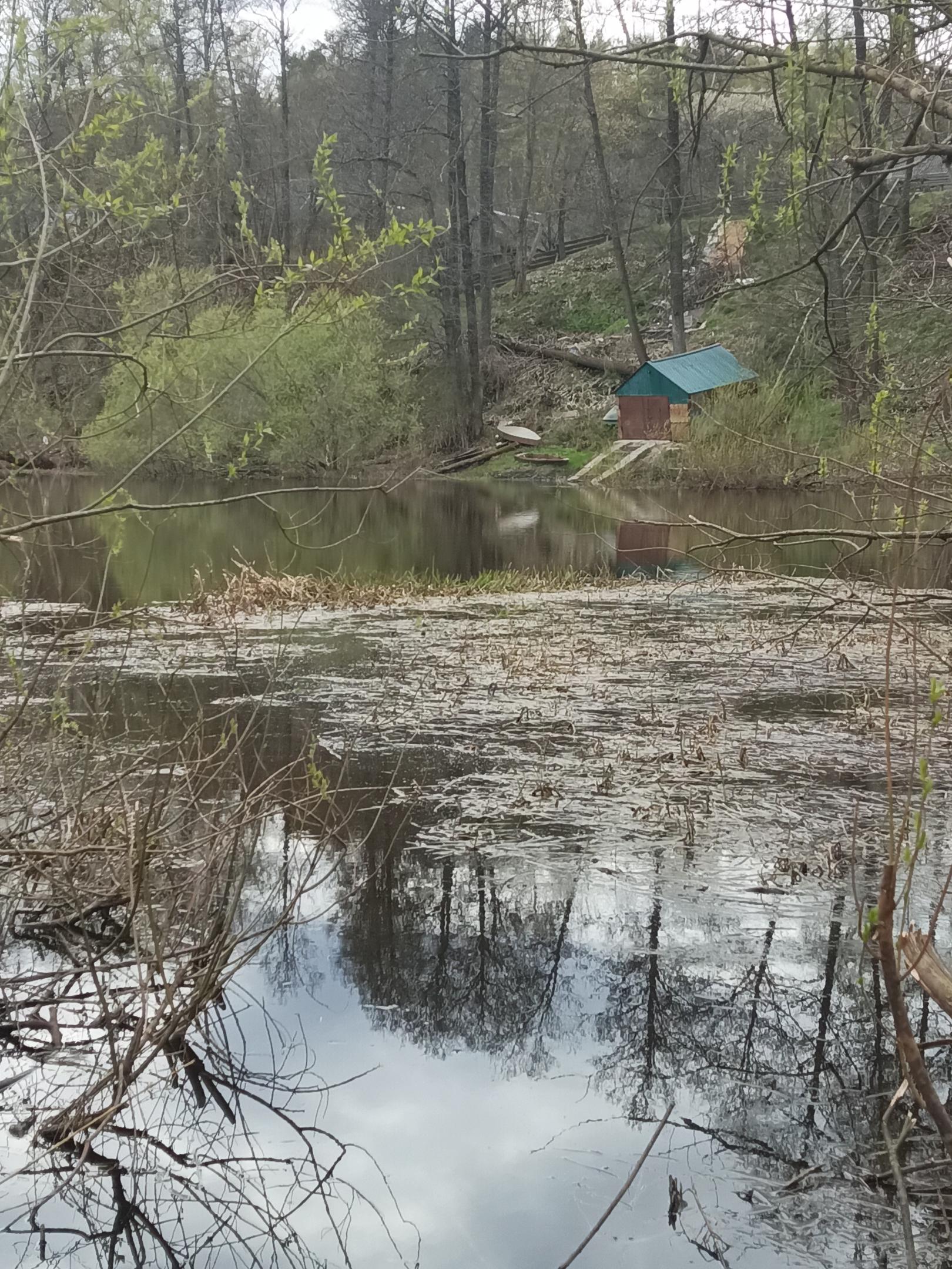 Березина у Веселово в разливе , но видно , что вода не первый день уходит . Покупаем в местной манапольке мороженое и возвращаемся чуть назад до поворота на Стахово . Первый съезд на Брилевское поле . Река разлита , до русла даже не дотянуться . В Лещинах до реки подъезд нашли , но уровень еще очень большой , выше берегов .