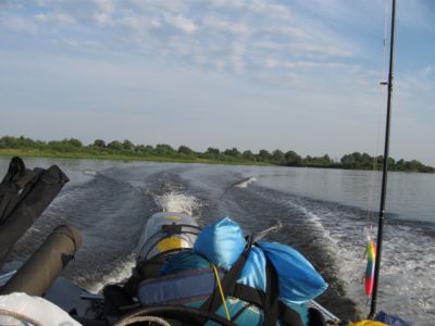 Лёгкая лодка, мощный мотор и крепкая рука кормчего даже в жару дает глоток свежего воздуха. На воде значительно лучше, чем на берегу, но в воде всё же лучше, чем в лодке. Однако лицензия куплена, воблерам показаны водные процедуры, жилеты надеты, и двадцать три еще советских лошади готовы вынести двух седоков лёгким аллюром на глисс. А понравятся ли сому забугорные воблеры? Оказалось, пока не очень. Зато воблеры очень понравились щукам. А что поделать? Я-то могу, если мне жарко, окунуться в воду (с удовольствием и незамедлительно!), а куда деваться рыбе в воде, когда жарко становится ей?