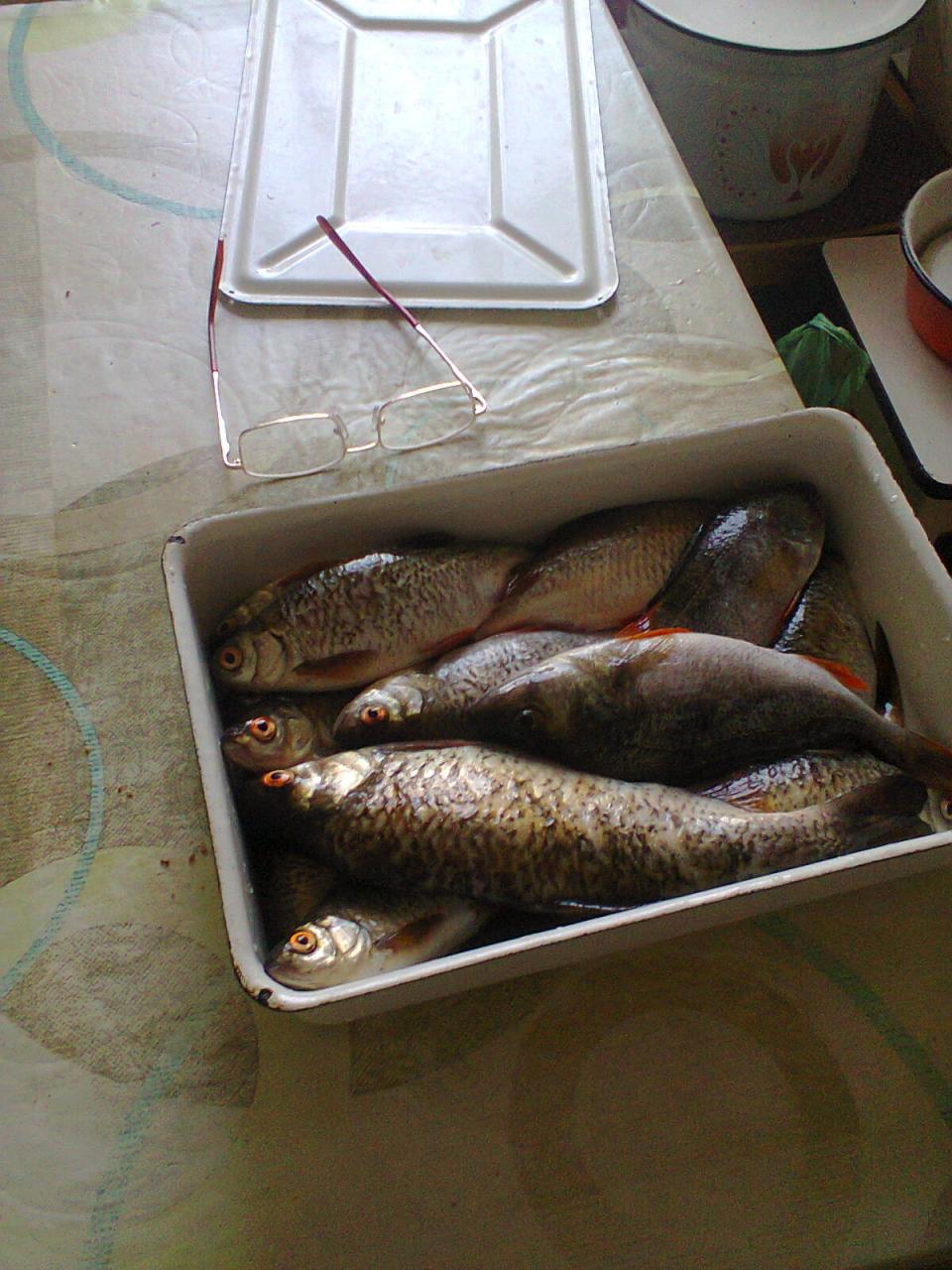 • В субботу в Асаревичском затоне у грушки норма мерной плотвы на козочку(ввиду полного игнора наживок за исключением кильки,клюющей на все).В улове одна даже на320гр, такую же принесли с реки доночники на червя.По щуке у рыбаков на 50жерлиц две околодвушки.Увидел интересную мормыху самопальную под авторским названием "костыль" улов и клев ошеломил.Попробую спаять к среде.Вот мой улов без таранки.Нажмите на изображение для увеличения.