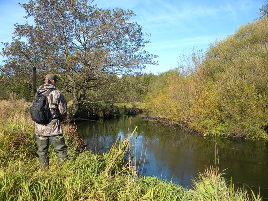 Водичка в речке помутнела до 1-1,3м. видимости, не понятно из-за чего, уровень не менялся. Да и сама река как-то притихла, заморозки дали о себе знать. Но нас не сбить с выбранного пути:). Я собрал спин, друган -нахлыст и вперед -покорять стихию!