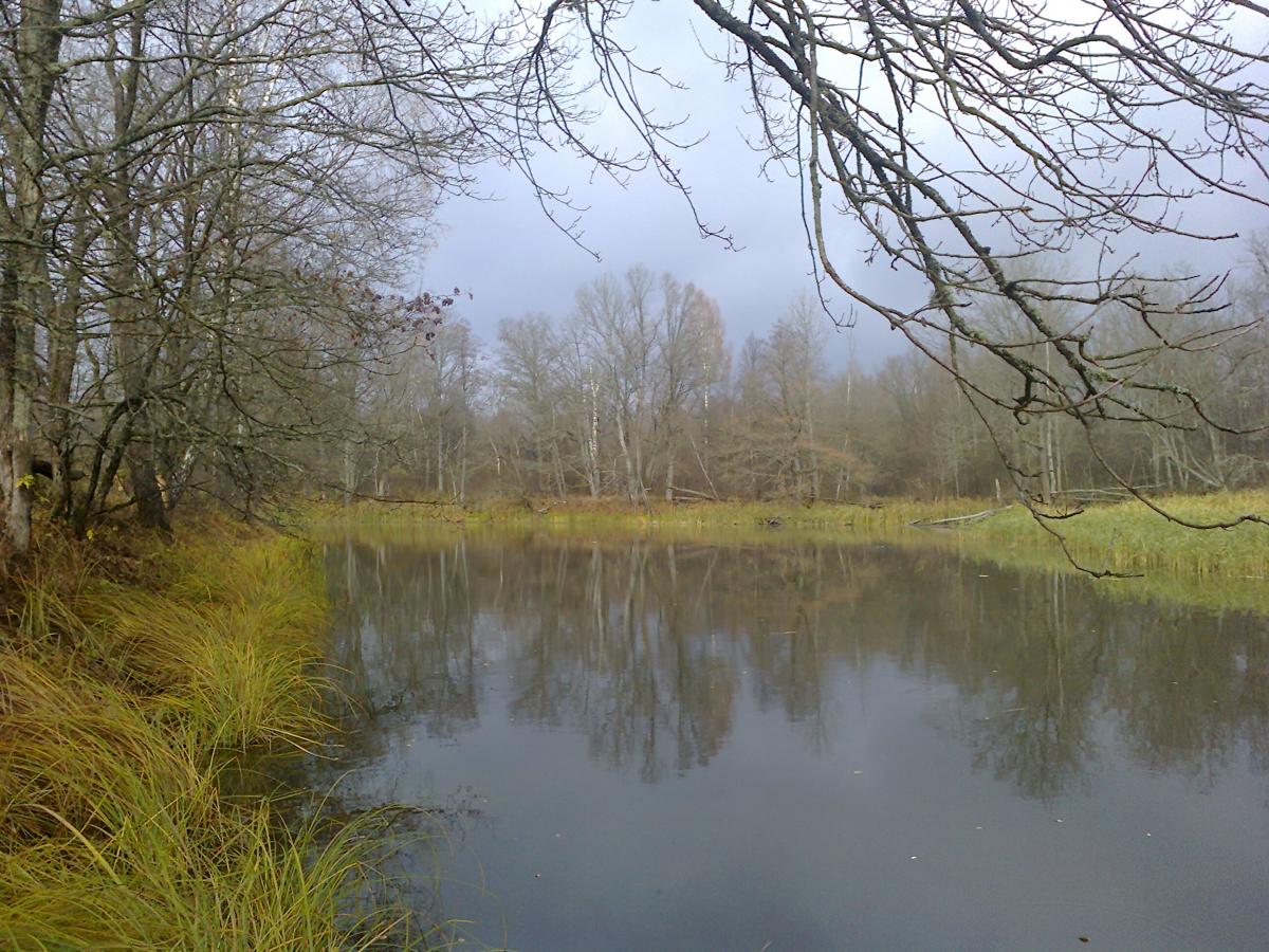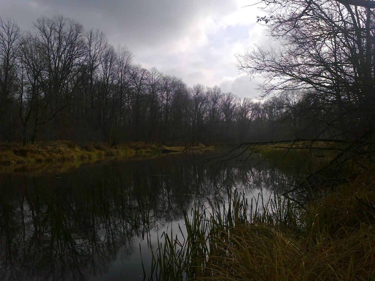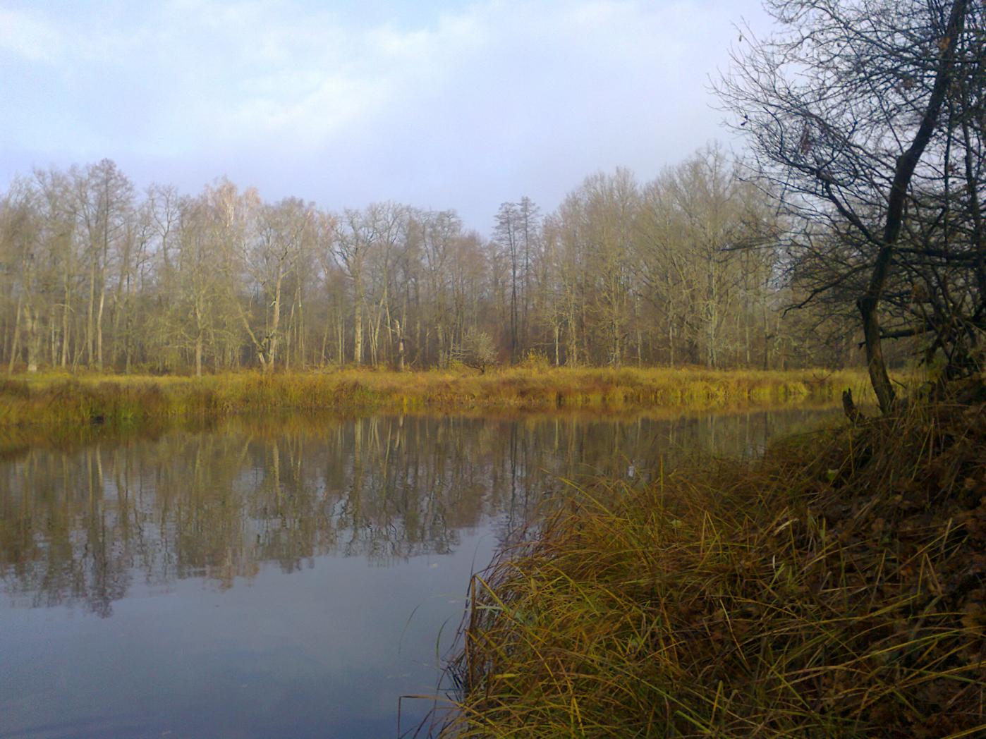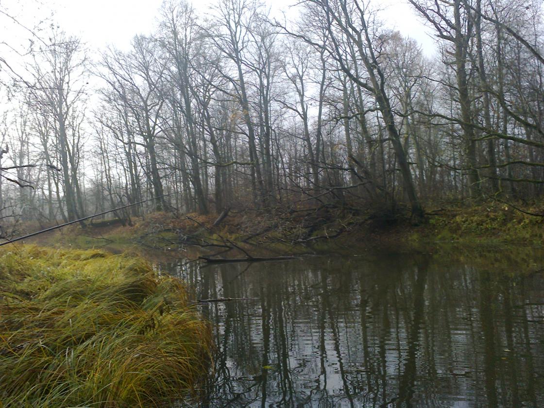 • Вчера выбрались на реку в район Чапуни. Целью было добраться до Лискова озера, обловить его спинингами, а заодно помакать приманки и в реке. Лисково озеро - местное название труднодоступной старицы, где раньше,"за тым часам", был сенокос жителя Чапуни по прозвищу Лисок (хитрый был как лис). В этой местности, как наверное и в любой другой, каждое место в лесу и на реке имело свое название. Назову навскидку те, что помню: Сядяйма, Россохи, Кивишки, Лисы, Гусина, Адамова,Дроздова (сеножати) и т.д. Раньше это было необходимо, иначе как сказать родным или знакомым в какую часть обширной Налибокской пущи пошел человек. Жаль, что людей, помнящих эти названия можно пересчитать по пальцам и вскоре они будут преданы забвению. Приехали к Чапуньскому мосту затемно,а дальше пешком в путь. Добрались до старицы сравнительно легко, т.к. мороз успел убить заросли крапивы и ежевики, они поникли и не так уж цеплялись за ноги. Уровень воды в Чапуньке,которую нам надо было форсировать, был не высокий и нам хватило сухого ясеня, чтобы перебросив его через речку, перебраться. Около 9 часов мы уже на старице и были удивлены тем, что вся она заставлена колобашками, среди которых курсируют на резиновой лодке два рыбака. С их слов, было пара сработок, но ничего серьезного. Конечно, это нас огорчило, мы ожидали попасть на нетронутый водоем, а тут постоянно по воде шлепают веслами. Ничего не поделаешь, стали ловить в этих условиях и вскоре из под упавшего в воду ствола, первая поклевка щучки килограмма на полтора. Но дальше поднялось солнце и поклевки прекратились. Меняли приманки, облавливали все приглянувшиеся закоулки, незацепляйки переползали корчи и упавшие в воду деревья, но тщетно, больше поклевок не было ни у нас,ни у колобашечников. Решили возвращаться, облавливая по ходу реку, но и в реке не клевало. Оставалась надежда на старицы на левом берегу Березины, но подойдя к мосту, мы поняли, что туда нам не добраться. Утром, в темноте, мы не увидели его состояния. Вот такая рыбалка. По рыбе слабо, но все равно хорошо: +16 и солнце в конце октября не часто бывает.Нажмите на изображение для увеличения.