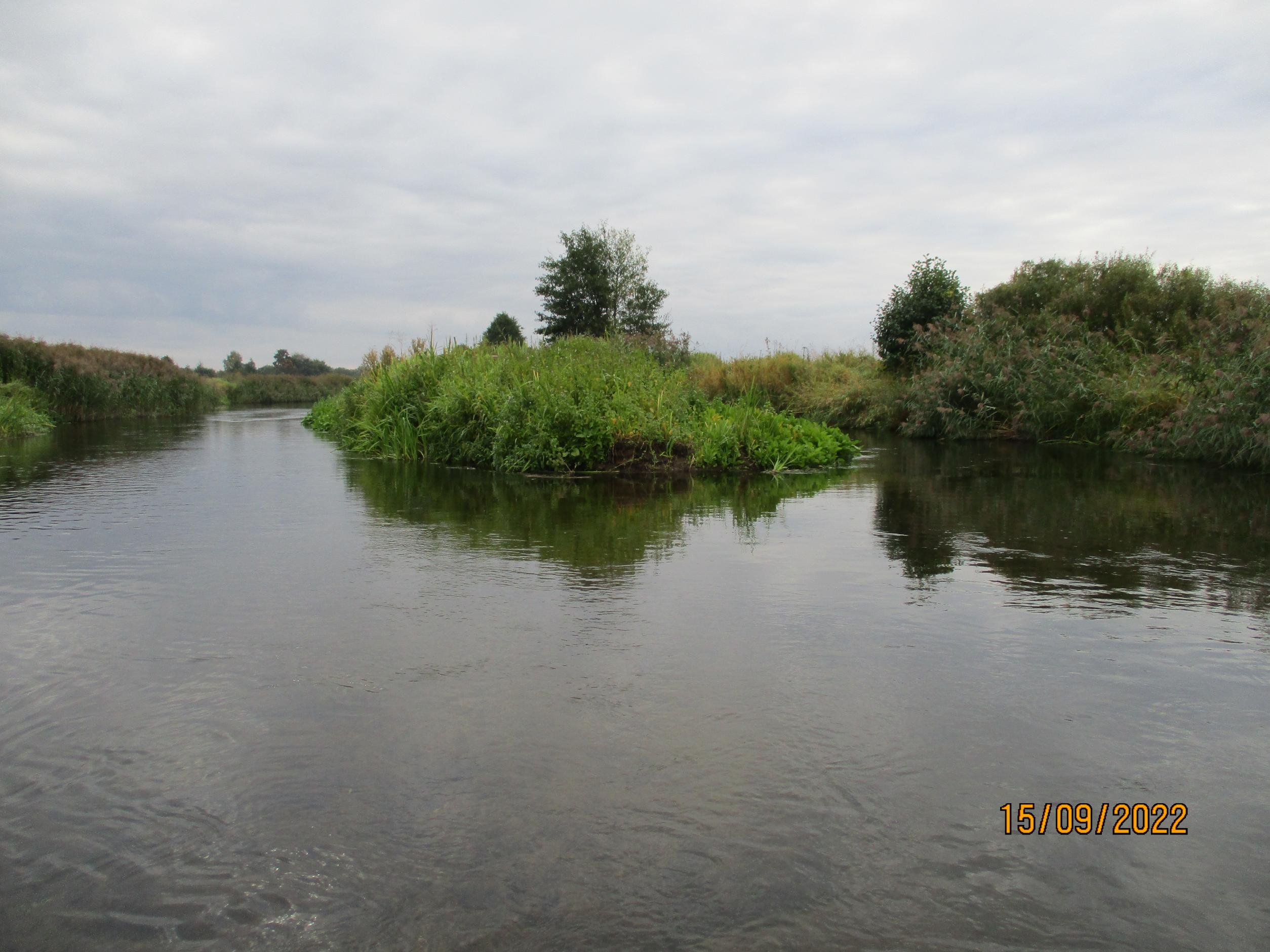 ..Вода малая, прозрачная, берега сильно заросшие травой. Характер реки запомнил ещё в молодости, когда один раз пришлось сплавляться на байдарках по этому участку. Середина мелкая, глубина и карманы под берегом. Корчей нет, если бы хотел корчи наверно надо было начинать от Чёрного озера, но это километров 12 (когда -то хаживал туда). Хотелось пройти новый участок.