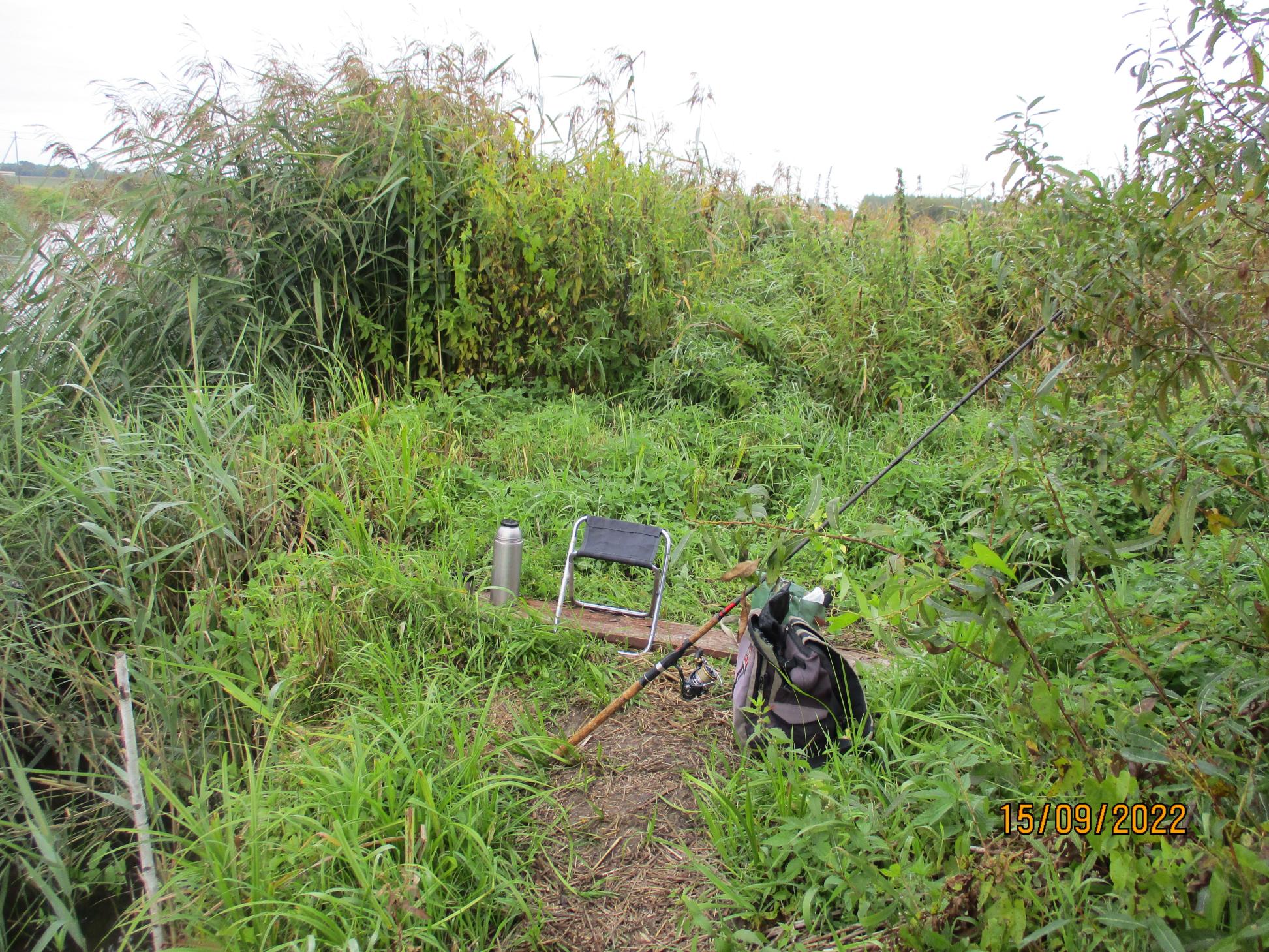 ..Две вертушки оставил на реке, две подарил деду. Разговаривал долго с местным рыбаком, я как раз сидел на выкошенном им месте на яме. На всех ямах, а их немного, было пусто.