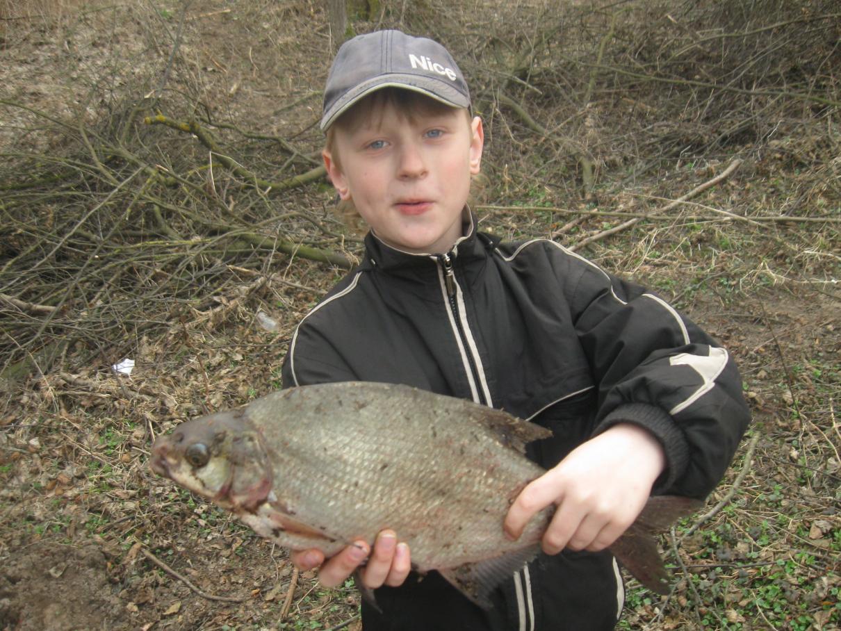 ID:	3663482 А вот вторая «на яме» совсем другое дело. Её и опишу. Папа приехал ещё утром. А мы? На мотоблоке через дачи…. Пришли, а папа в грязи рыбу ловит. Сначала не поверил, что ловит. Думал: ну как можно ловить рыбу в трясине?! Но увидел пакет с рыбой и ахнул плотва! Причём хорошая!!! Но нас он в трясину не пустил, и мы пошли на другое место. Поклёвки и сначала были, но подсечь никак. Мелочь. Ждём чего-нибудь, что засечётся. Ждём, и вот уже надежды почти нет, мой младший брат Игорь уже уселся за свою игрушку PSP. А я смотрю, смотрю на кончики фидеров и жду, жду. И вот долгожданная поклёвка! Я подскакиваю с ведра, на котором сидел (кстати, в нём была прикормка, поэтому я сидел « в ведре » и встал, а ведро прилипло к пятой точке, но оно упало, не рассыпав прикормки). Я вцепился в удилище подсёк и кручу катушку. Вытянул легко, но плотвичка хорошая. Тут и у Игоря проснулся азарт, он захотел ловить по очереди, каждый по рыбке. Итог - у Игоря два ерша, а у меня - две хорошеньких плотвы. Но рыбалка не окончена. Сижу, жду поклёвки. Папа прикола ради повесил пучок червей на один фидер. Поклёвки вроде утихли. И вот поклёвка на фидер с пучком червей! Подсекаю! Тащу! Очень тяжёлая рыбка и вот дядя Денис бежит с подсаком. Под берегом показался мой лещ!!! Дядя Денис подсаком достал моего леща! Папа дал ему 700-800 грамм, но я как своему, дал бы и 2 кг. И вот мы с лещом пофоткались.…Нажмите на изображение для увеличения.