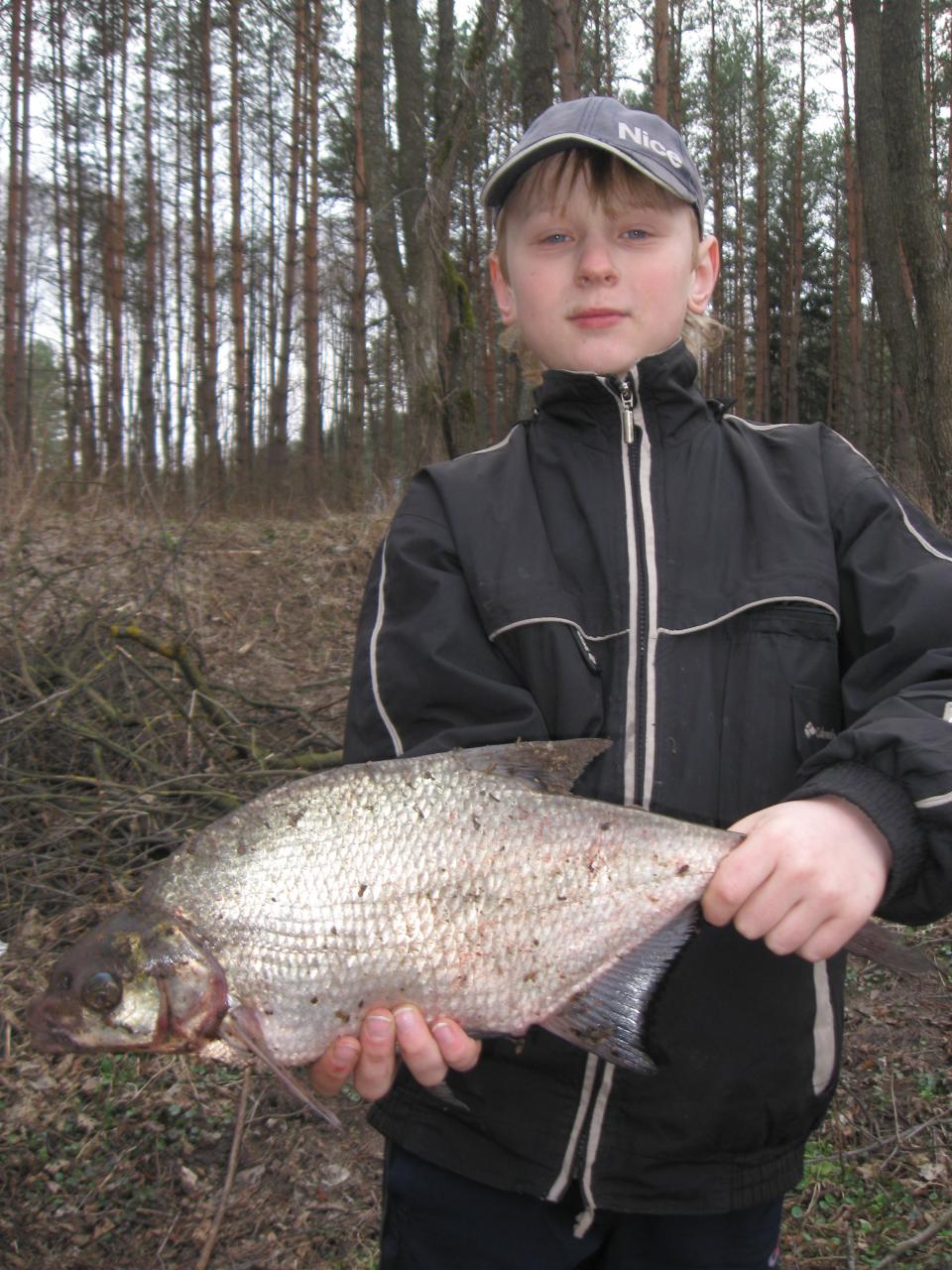 ID:	3663485 Потом поклёвка Игоря подсёк я и потащил немного, а Игорь был у дяди Дениса, они костёр палили. Я его позвал он прибежал. Я чувствовал, что рыбка небольшая, но когда она показалась, я чуть не упал. Лещ, которому папа дал 1200-1300 грамм, который сопротивлялся, как хиленькая плотвичка не мог не удивить. И меня очень расстроило что эту «хиленькую плотвичку» споймал не я.Нажмите на изображение для увеличения.