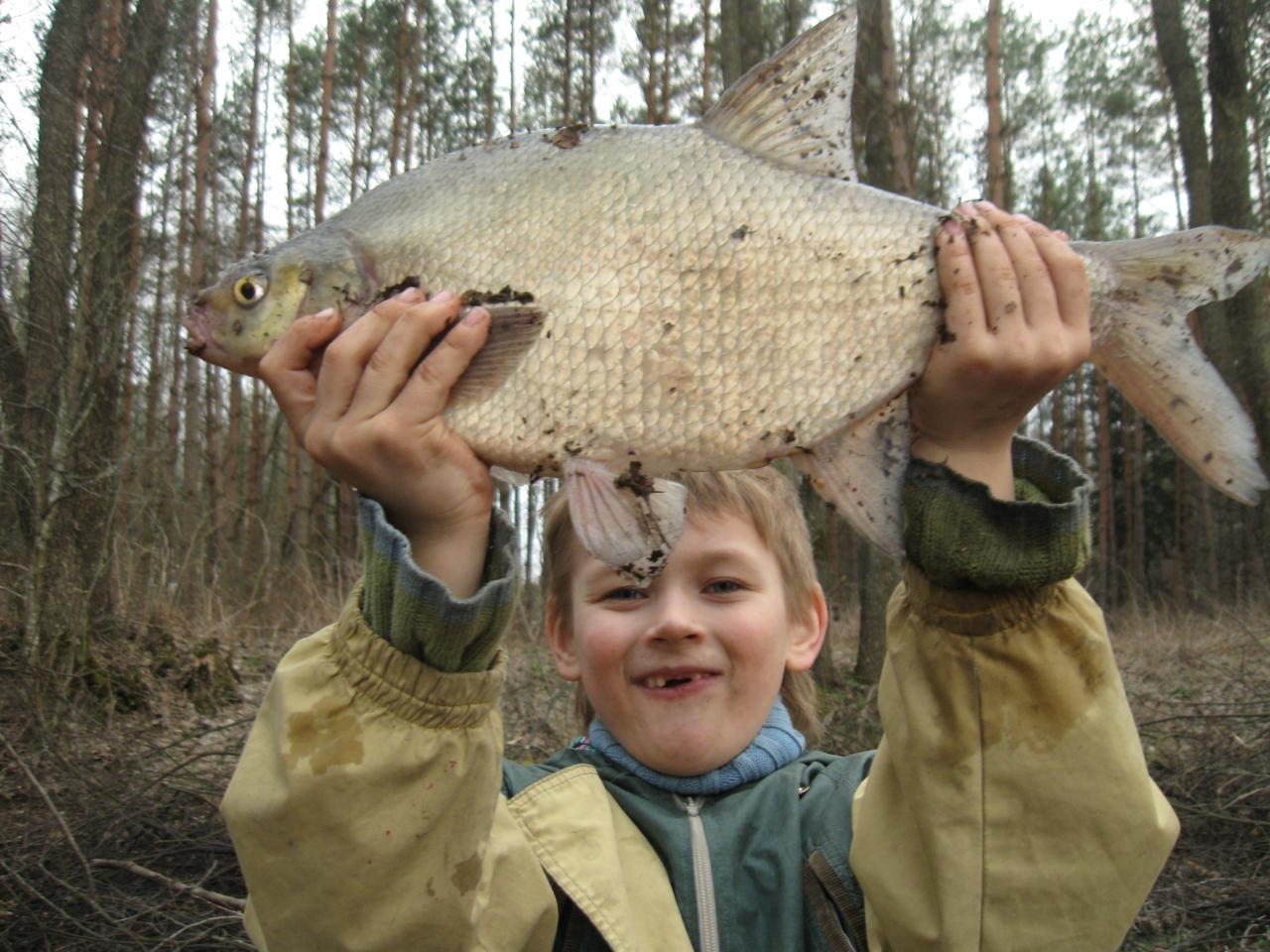 ID:	3663482 А вот вторая «на яме» совсем другое дело. Её и опишу. Папа приехал ещё утром. А мы? На мотоблоке через дачи…. Пришли, а папа в грязи рыбу ловит. Сначала не поверил, что ловит. Думал: ну как можно ловить рыбу в трясине?! Но увидел пакет с рыбой и ахнул плотва! Причём хорошая!!! Но нас он в трясину не пустил, и мы пошли на другое место. Поклёвки и сначала были, но подсечь никак. Мелочь. Ждём чего-нибудь, что засечётся. Ждём, и вот уже надежды почти нет, мой младший брат Игорь уже уселся за свою игрушку PSP. А я смотрю, смотрю на кончики фидеров и жду, жду. И вот долгожданная поклёвка! Я подскакиваю с ведра, на котором сидел (кстати, в нём была прикормка, поэтому я сидел « в ведре » и встал, а ведро прилипло к пятой точке, но оно упало, не рассыпав прикормки). Я вцепился в удилище подсёк и кручу катушку. Вытянул легко, но плотвичка хорошая. Тут и у Игоря проснулся азарт, он захотел ловить по очереди, каждый по рыбке. Итог - у Игоря два ерша, а у меня - две хорошеньких плотвы. Но рыбалка не окончена. Сижу, жду поклёвки. Папа прикола ради повесил пучок червей на один фидер. Поклёвки вроде утихли. И вот поклёвка на фидер с пучком червей! Подсекаю! Тащу! Очень тяжёлая рыбка и вот дядя Денис бежит с подсаком. Под берегом показался мой лещ!!! Дядя Денис подсаком достал моего леща! Папа дал ему 700-800 грамм, но я как своему, дал бы и 2 кг. И вот мы с лещом пофоткались.…Нажмите на изображение для увеличения.