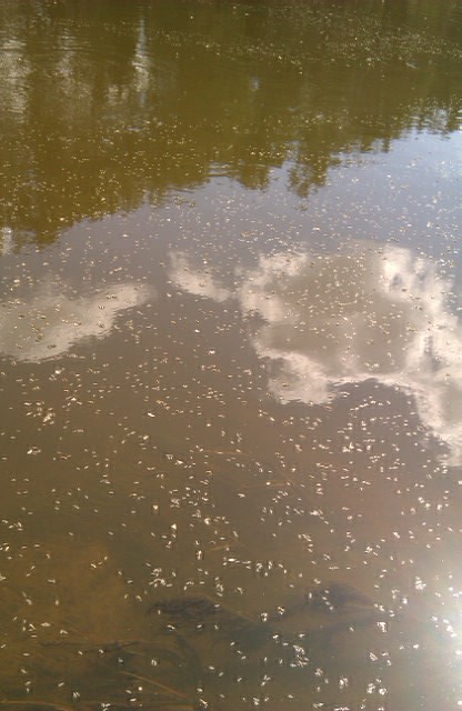 Сегодня наблюдал вылет каких то мотыльков, и было их столько, что казалось нахожусь в тумане. Нажмите на изображение для увеличения.
