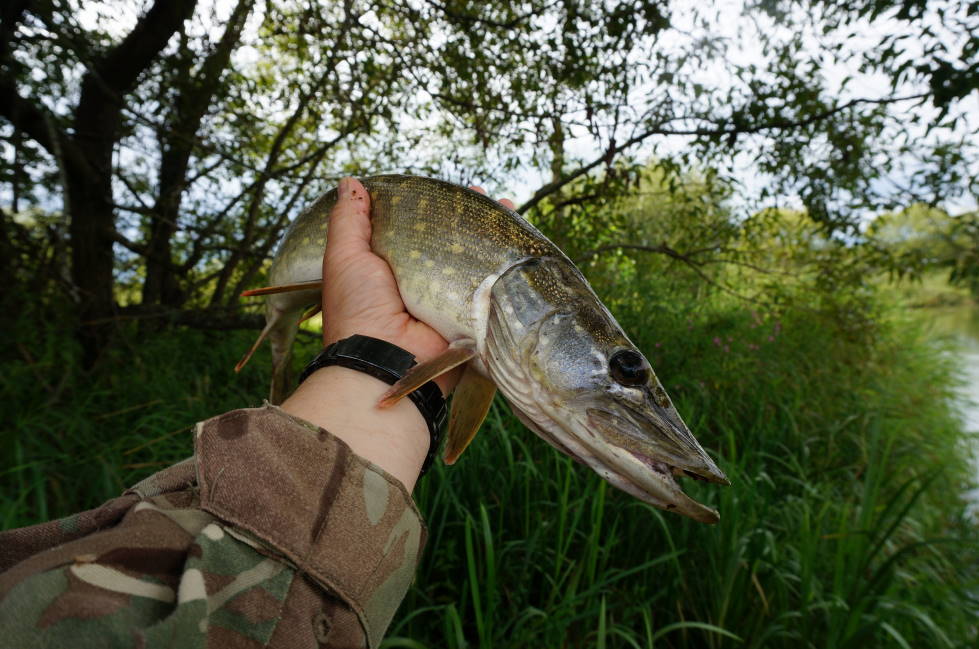 Уровень чуть поднялся после дождей, "Вилейка" дала мути зелёной, прозрак меньше метра, берега - джунгли. Щука активна, но берёт очень аккуратно. На полтора десятка поклёвок только две пойманых щучки - килошки, пара сходов и несколько ампутированных хвостов приманок.Все поклёвки вплотную к потенциальным засадам и на новых точках, река сильно изменилась с прошлого года. Странно, но не было ни одного контакта с полосатыми, даже не провожали приманку ни разу.
