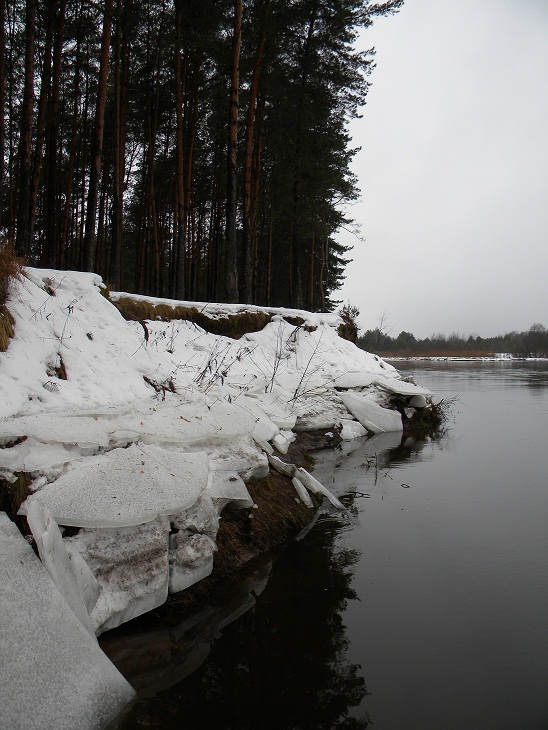 • Я в воскресенье был на Вилии, ниже д. Рыбаки. Так там лёд стоял. Прошёл с другом где-то 3км. И видел только в двух местах воду, участками около 30м. вблизи которых находились утки!)