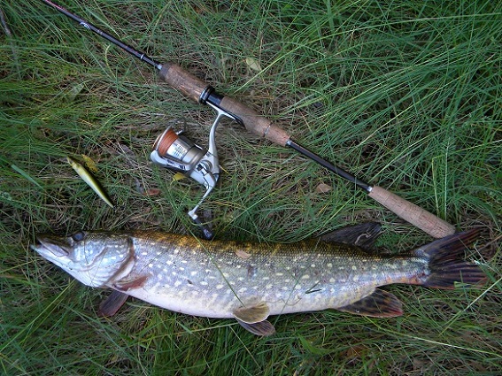 Поймал одну щуку на 700-800г. Был один промах - прямо у ног, в погоне за воблером, вывернулась и показала бок, такая же по размерам щука.