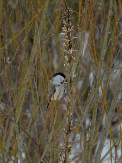 Черноголовая гаичка решила перекусить в трёх метрах от меня.