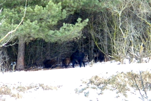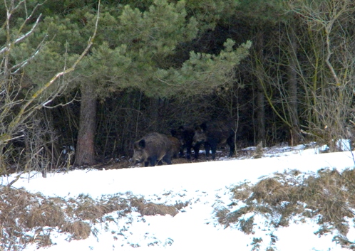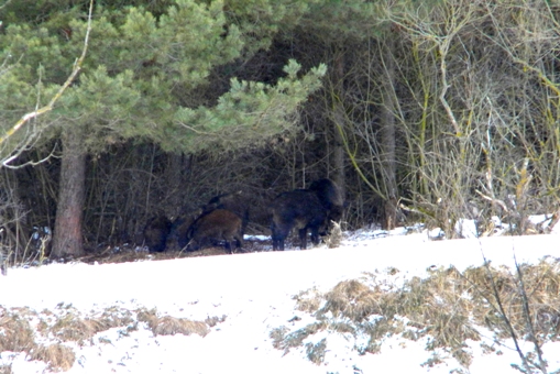 Кабанье семейство расположилось на лёжку(благо, что на противоположном берегу) и совсем меня не стеснялось. Парочка взрослых мамок и пяток подсвинков. Каждый раз, когда одна из мамок вставала, чтоб улечься на другой бок, поросята потешно визжали и толкались стараясь занять место поближе к "печке".:D