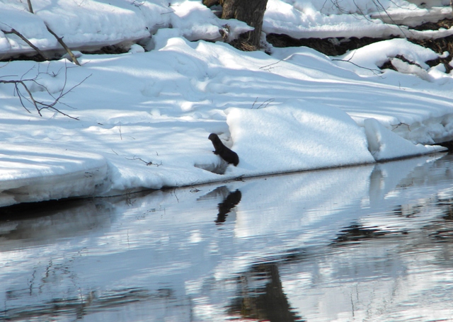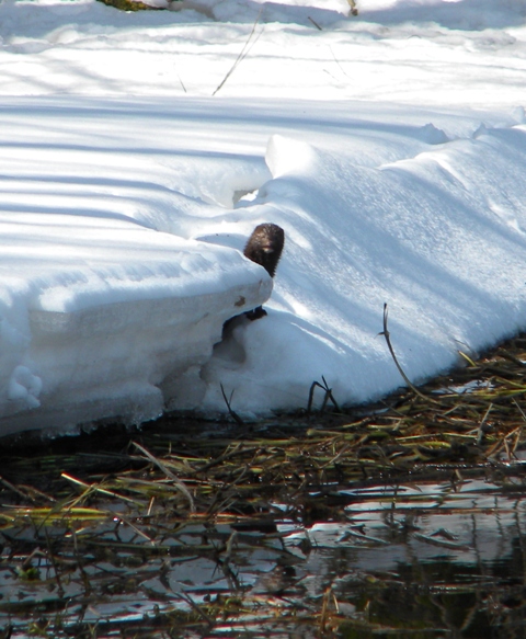 Первой встретилась норка. Метрах в 20-ти решила порыбалить. Только, периодически поглядывала на меня, не замышляю ли чего? А я и не замышлял. Только фотик тихонечко достал.:) К слову, она рыбку поймала почти сразу. Секунд 10 потратила, не больше и вынырнула с плотвичкой в зубах. Этот момент заснять не успел.