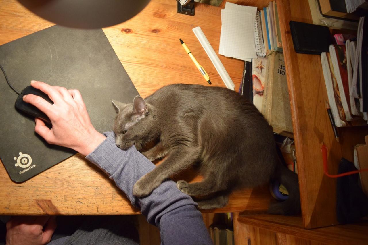 Сегодня взяли себе нового питомца, кошку возраст около 5 месяцев. С передержки. Еще в пятницу была на улице. Стандартный набор, ушной клещ, блохи, колтуны, возможно глисты. Ну вроде и все в ветклиники вроде больше ничего серьезного не выявлено. Будем лечить.